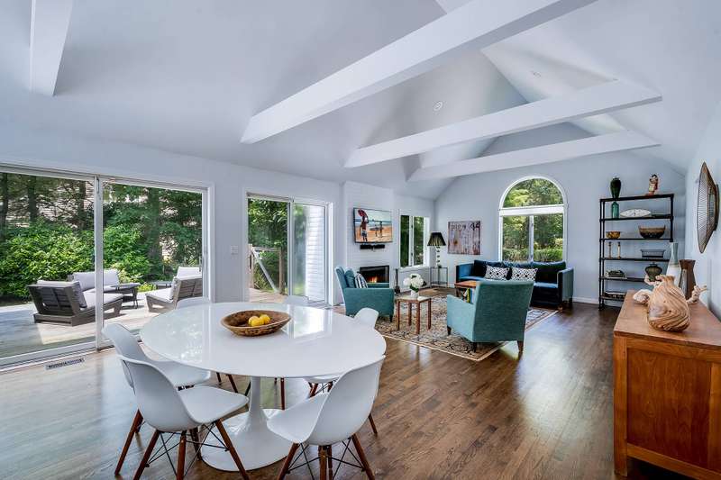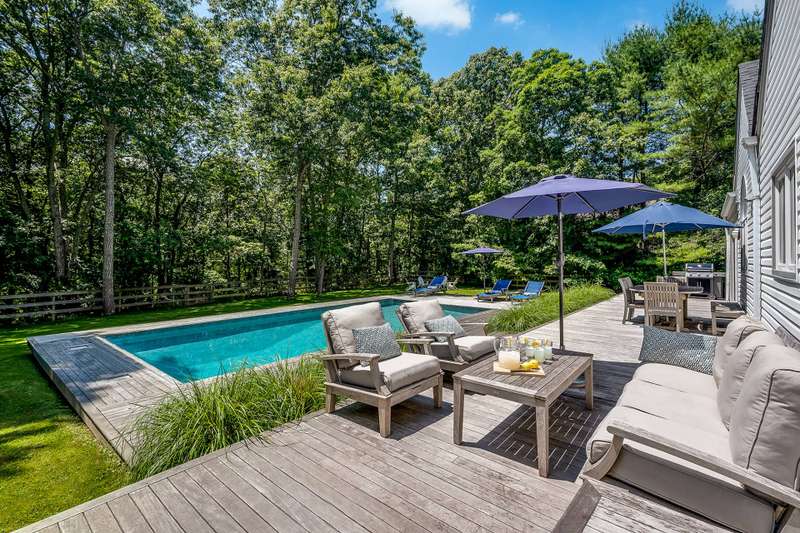 This designer home located in a private community situated minutes from Bridgehampton and Sag Harbor Villages features three bedrooms, three bathrooms, and open kitchen with an island and marble counters. The bathrooms have been completely updated with state-of-the-art finishes and fixtures and the light-filled space is complemented by vaulted ceilings, oversized windows, and sliding glass doors. Ideal for entertaining, this pristine home is decorated with muted grays, blues, and whites and will make an ideal summer retreat! Other features of this lovely home include: a fully equipped chef's kitchen with brand new appliances, central air conditioning, fire pit, heated salt-water pool with an option to add a child safety fence if needed. NEW INDOOR PICKLEBALL COURT in Lower Level! Located on a quiet cul-de-sac in a private community. Call or email for more information. Listing ID: 754947 Amenities: 3 Bedroom 3 Bathroom · Heated Saltwater Pool · Hardwood Floors · High Ceilings · Open Floor Plan · Stainless Steel Appliances · Walk-In Closets · Central Air Conditioning · Fully Equipped Kitchen · Keyless Entry System · Laundry Room · Fireplace · Outdoor Fire Pit · Childrens Games & Activities · Indoor Pickleball! . Beach Chairs Beach Umbrella and Cooler · Located on a Cul de Sac · 4 miles to Ocean Beach · 2 miles to downtown Bridgehampton · 2 miles to downtown Sag Harbor · Additional 1500sf Lower Level Media/Play Area · EV Charger. Also available for the US OPEN 2 weeks June 2026