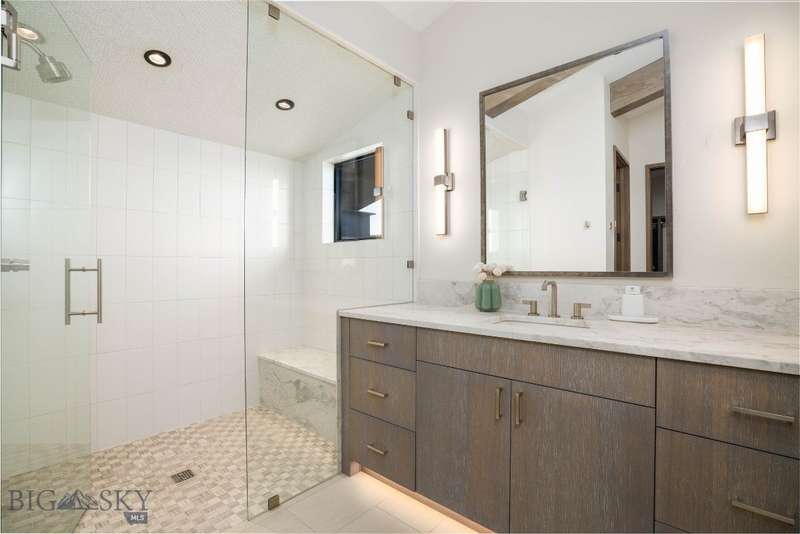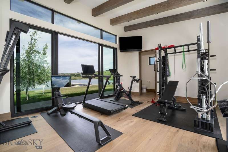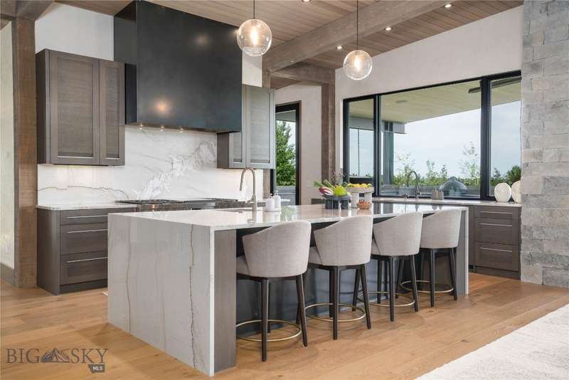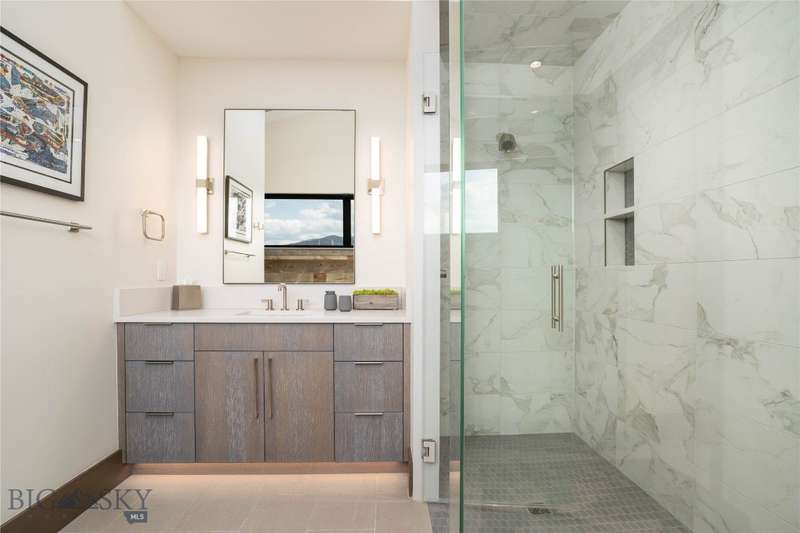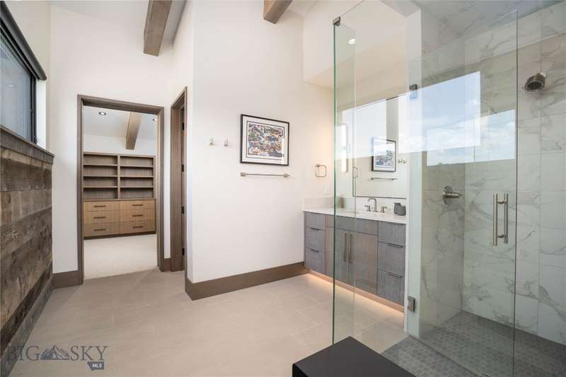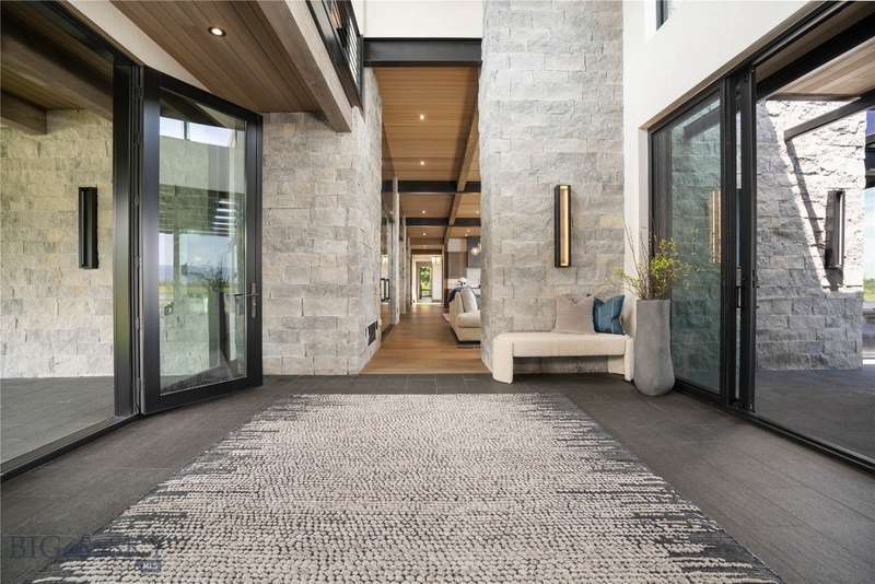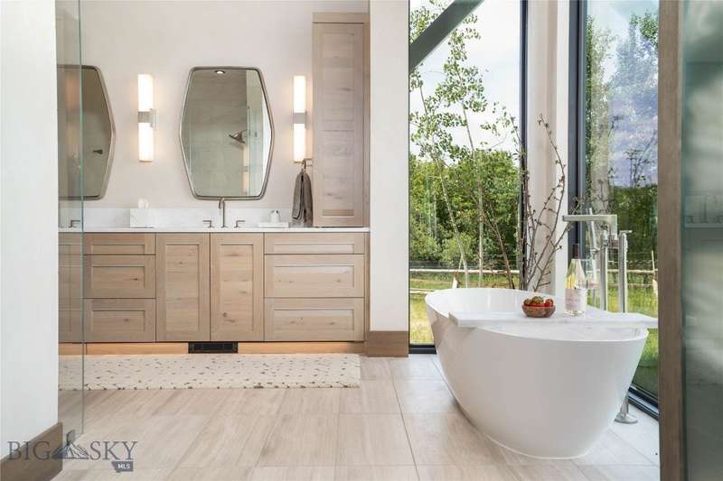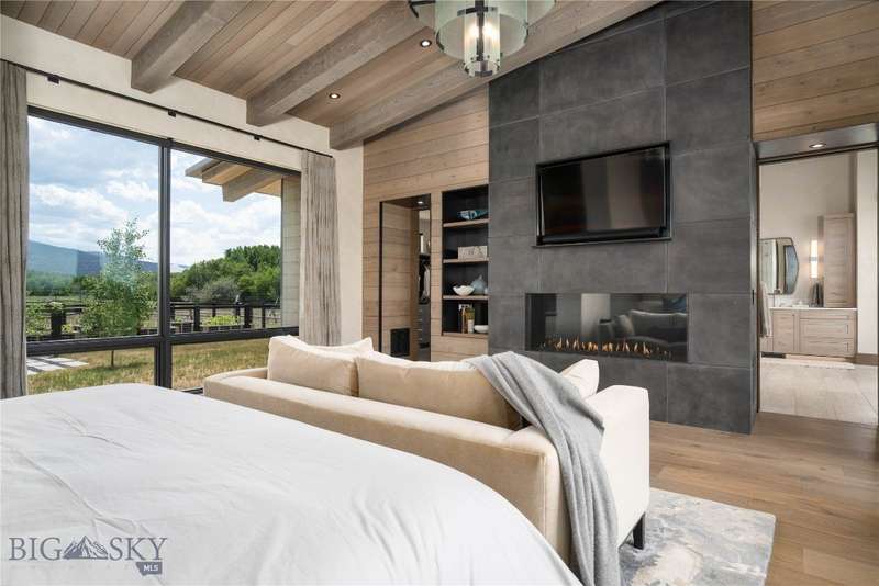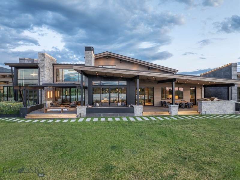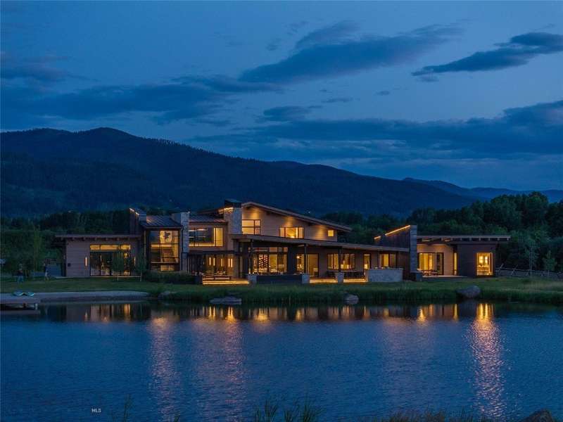 Welcome to Lightfell-Where light, land and water meet and life slows down. This premier Montana estate offers the perfect fusion of functional, modern luxury and a deep connection with the 20 acres of land located just 10 minutes from downtown Bozeman. Completed in 2024 by Centre Sky Architecture and Bridger Builders, this remarkable property features over 13,200 SF of living spaces - 7,600SF of interior living with a 5,655 SF, 3-bed main residence, a 1,990 SF, 4-bed guest home and 5,600+/- SF Outdoor Living spaces, plus a 5,300 SF shop and Sportsman's Lounge-crafted for elevated everyday living and effortless entertaining. Every detail of the main home has been meticulously designed, from floor-to-ceiling windows framing panoramic views of four mountain ranges that surround the valley to the tranquil sight lines over your private 3-acre, stocked pond. Enjoy seamless indoor-outdoor living with heated patios, a sunken hot tub, outdoor gas fireplace, built-in grills, and beautifully manicured lawn and landscaping. Inside, the 3-bedroom main home features a sanctuary primary suite with vaulted ceilings, fireplace, spa-inspired bath with soaking tub and tile shower, and a generous walk-in closet complete with island and private laundry. An open-concept Great Room with temp-controlled wine gallery, home gym, two additional ensuite bedrooms and fenced raised garden beds round out this thoughtfully curated residence. The 4-bedroom guest home is ideal for hosting, offering two identical wings-each with a spacious large bedroom and bunk room-joined by a comfortable central living area. Guests can enjoy privacy without sacrificing connection. The 5,300 SF heated shop is a dream setup for Montana's outdoor lifestyle. Two pull-through bays including one with 14'x15' doors and an additional door to accommodate RVs, toys, and gear. Inside, the Sportsman's Lounge provides a rustic gathering space with kitchenette, gas stove, and built-in safe. Additional amenities include a dog wash station, washer/dryer, and an upper level game room with billiards, foosball, and shuffleboard completed by a rooftop deck offering sweeping views of the Bridgers-perfect for summer sunsets or starry nights. This rare offering delivers privacy, space, and five-star living in one of Bozeman's most exclusive neighborhoods with abundant wildlife and Bozeman Creek access.
