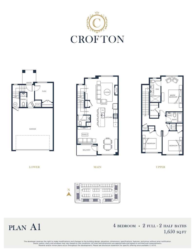 Welcome to CROFTON, the newly constructed final phase in Willoughby Heights by Atrium Developments. Offering some of the largest, move-in ready 3 and 4 bedroom townhomes on the market. Designed for modern families, these homes feature open-concept spacious layouts, bright and stylish interiors, and over-height double-car garages for added convenience. Gorgeous LG kitchen appliances with 5-burner gas range and A/C standard in all homes. Offering a prime location close to top-rated schools, parks, shopping, and transit. Crofton is Langley's BEST value offering the perfect blend space, comfort, and accessibility. Come and view our beautifully staged show homes. Sales Centre is open on Saturdays and Sundays from 1 to 5 PM. Enter through home #67.