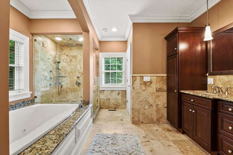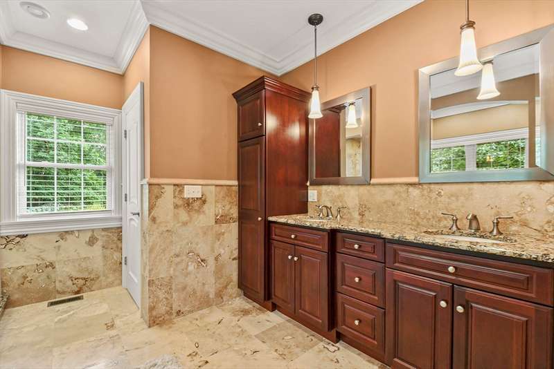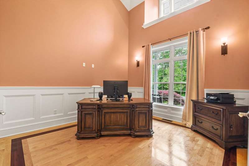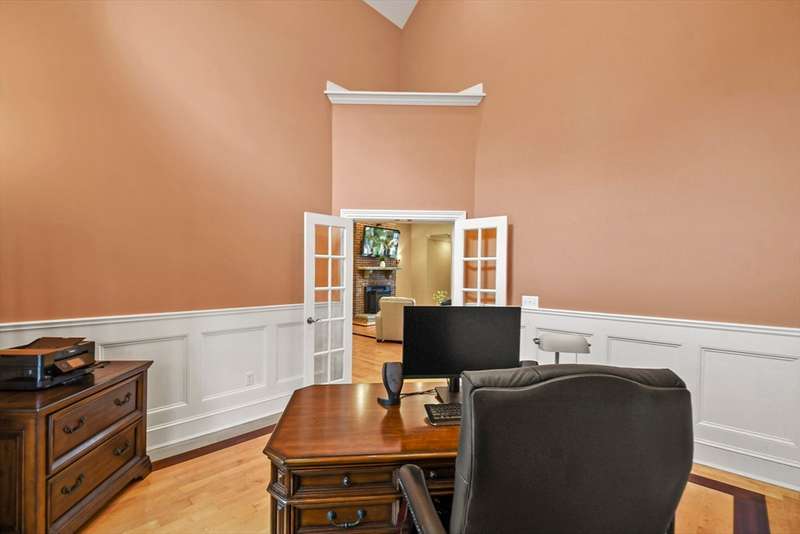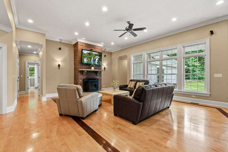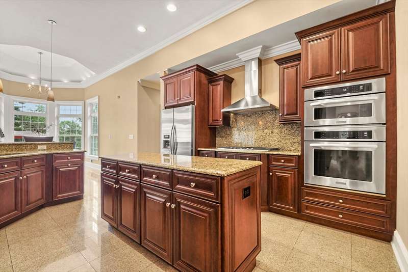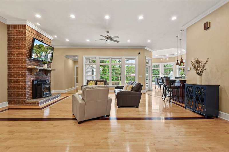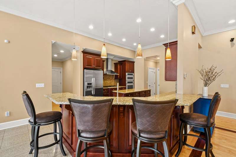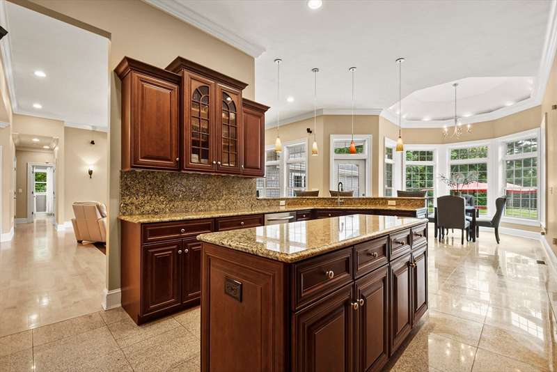 This exceptional & stylish one level custom-built home commands attention as soon as you walk through the grand foyer. The expansive open-concept layout offers connection between the kitchen, casual dining, and great room. This house has soaring ceilings, a Harmone Pellet stove fireplace . The formal dinning room has custom wainscoting that exudes sophistication in this room. The gourmet kitchen is fitted with cherry cabinetry, a stone backsplash, and a granite island with a seating area. Outside offers a lavish Oasis, perfect for entertaining guests. Large attic & basement for future expansion .