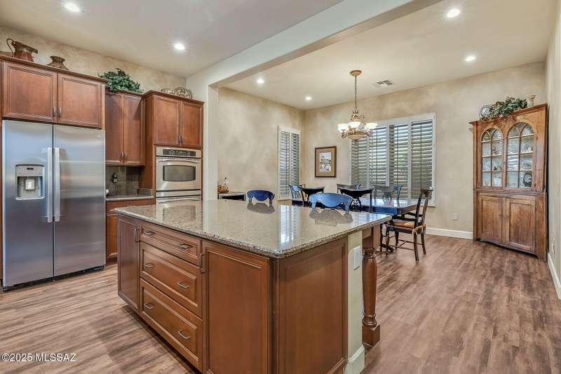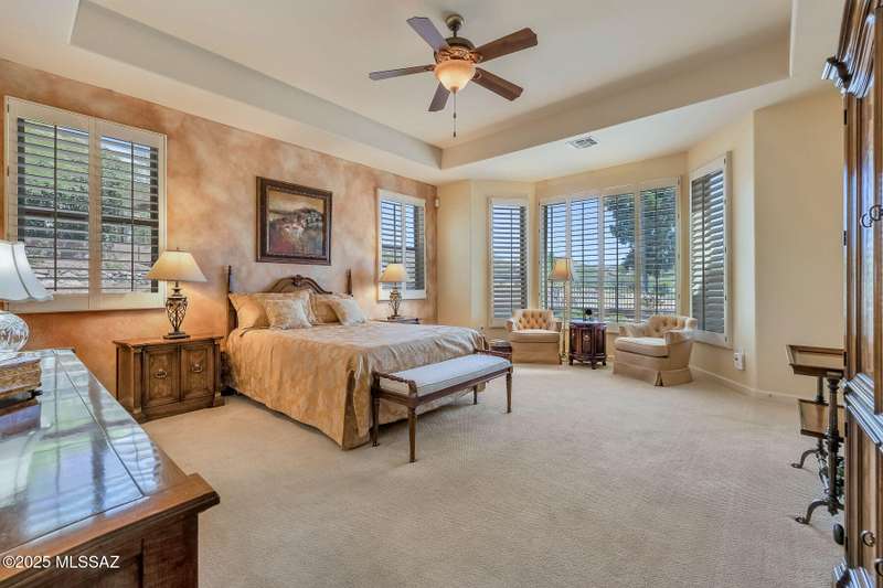 EXQUISITE LUXURY HOME resides on a Premium View Lot in the coveted PRESERVE at SaddleBrooke boasting Panoramic Golf Course and Catalina Mountain Views. Popular Sabino plan on corner lot offers 2,664 sq ft of living space in main home comprising dual Ensuite Bedrooms, Den/Office and Powder Room. Private, detached 285 sq ft Casita off gated courtyard is ideal for additional guests. This elegant Open Concept Plan showcases recessed ceilings, bay windows, faux paint accents, Luxury Vinyl Plank flooring with carpeted bedrooms, plus stone pavers front & rear. Great Room is highlighted by distinct Living & Dining areas, built-in Media wall, Fireplace and View Windows. Expansive Gourmet Kitchen hosts dual islands with breakfast bars, large breakfast nook, rich hued cabinetry, Quartz countertops,