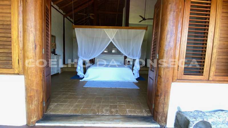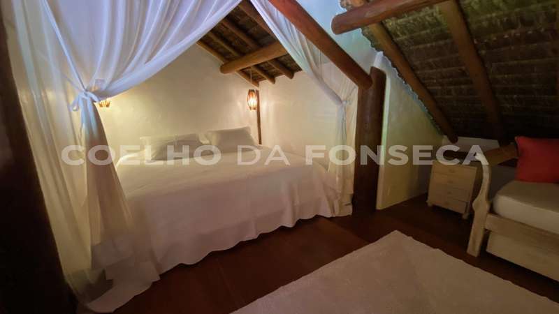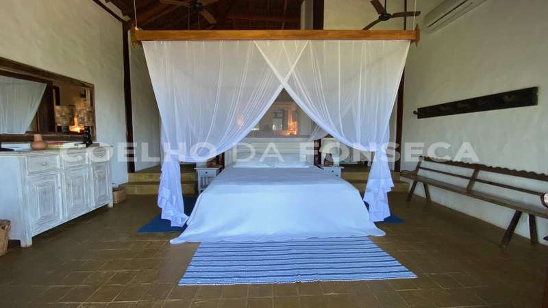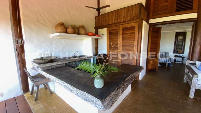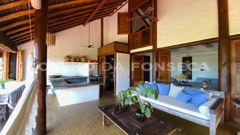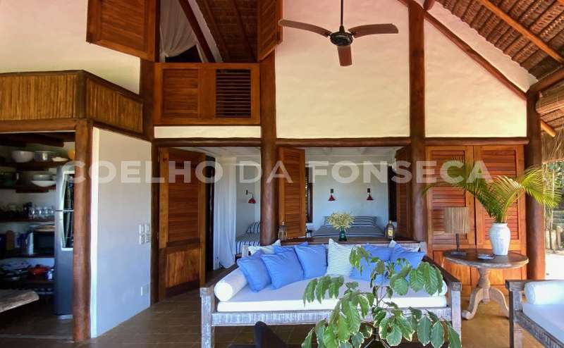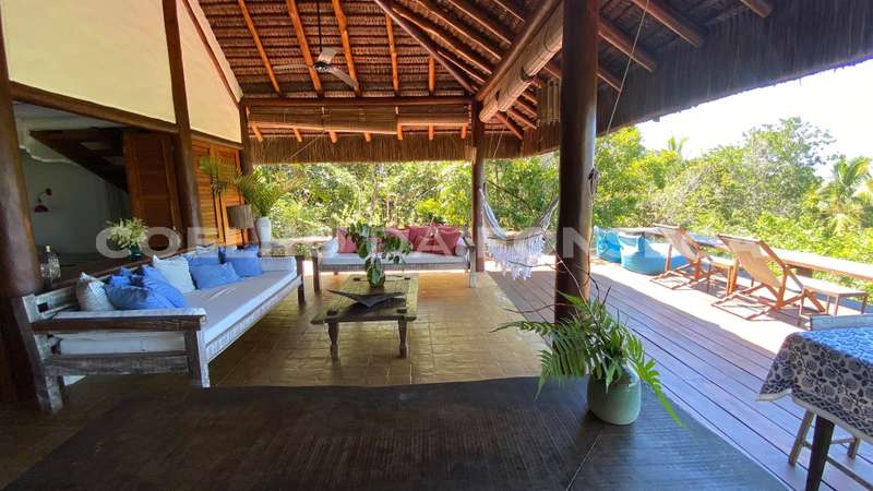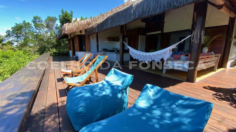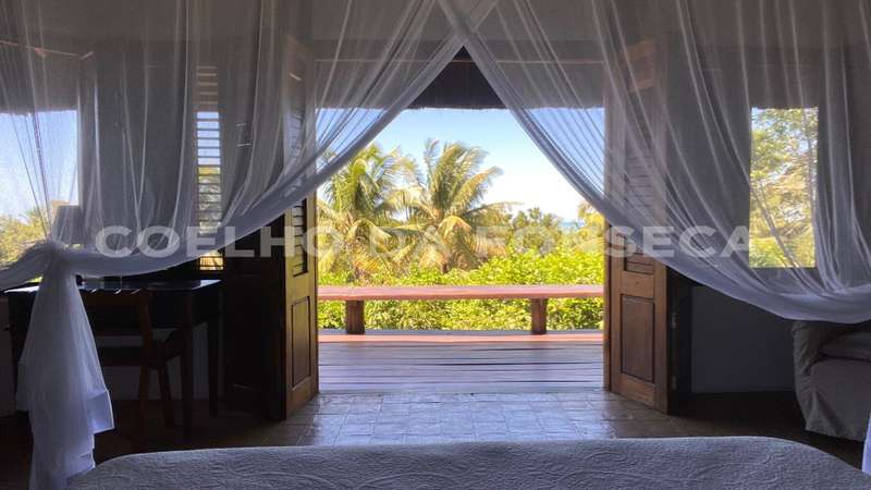 Bangalô super charmoso, estilo balinês, em praia particular, rodeado por uma natureza exuberante. O living integrado à varanda e à cozinha, com vista totalmente desimpedida para o mar. O Condomínio possue campo de golfe, campo de polo, clube com piscinas, bar e restaurante, quadras de tênis e beach tenis, pista de pouso, segurança 24h, playground, lojas de conveniência, pousadas e restaurantes com ótima culinária. A praia é de areia clara e água límpida, inclusive com tartarugas, e conta ainda com serviço de cadeiras e ombrelones. O condomínio fica à 18 quilómetros ao Sul de Trancoso e à 40 minutos de Caraíva.