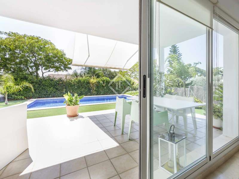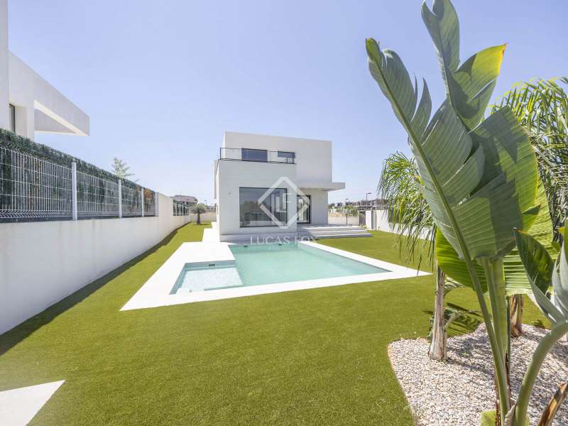 Lucas Fox presents for sale this house with a single floor layout , in an development with 24-hour security service in Bétera, Valencia. The villa sits on a plot of approximately 830 m² and offers spacious areas and a comfortable layout. As soon as you enter, you will find the bright living-dining room with a double-height sloping ceiling and access to the two terraces of the house. The kitchen is also large, with space to accommodate a table and chairs. Just before entering the bedroom area, you will find the guest toilet and some closets. The night area, separated from the rest of the house for greater privacy, consists of four bedrooms and two full bathroom . The house has air conditioning and radiator heating. All rooms are exterior and have windows. In the exterior area, the garden is decorated with artificial grass and other natural plants. The swimming pool is large and faces south. There is space to park two cars and there is a large closed storage room . Please contact for more information.