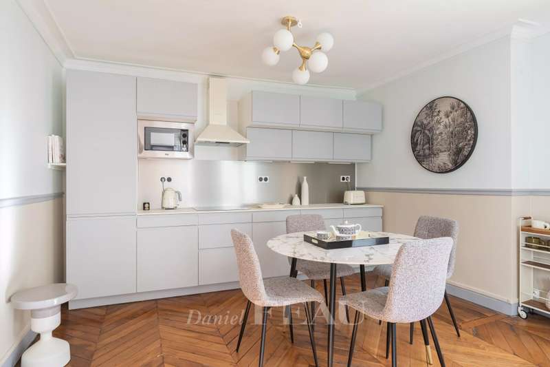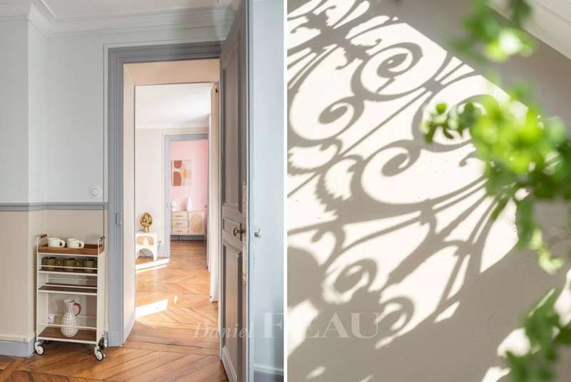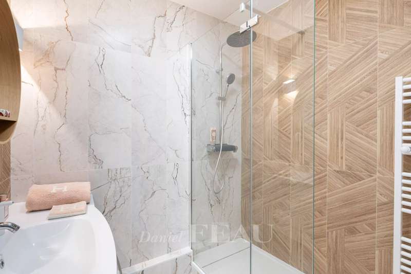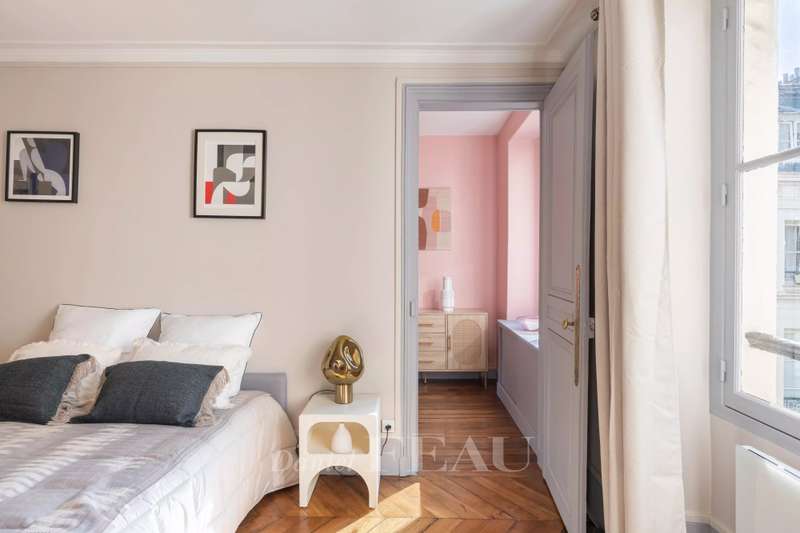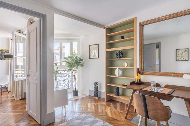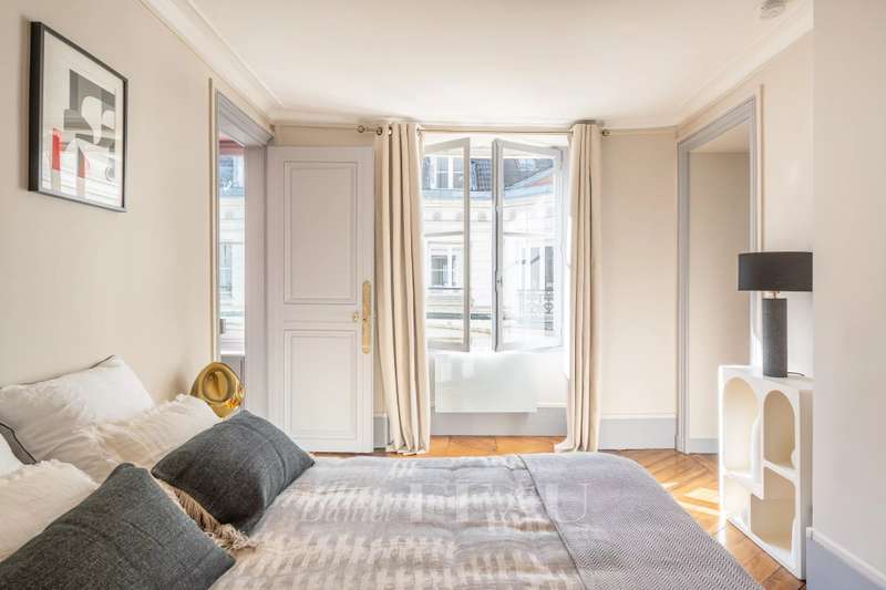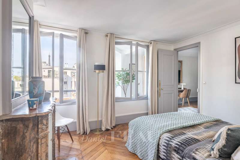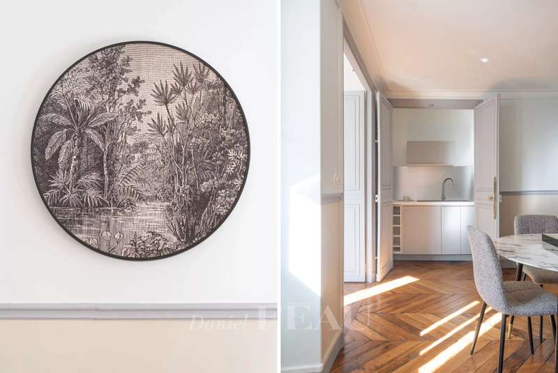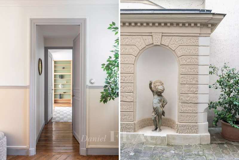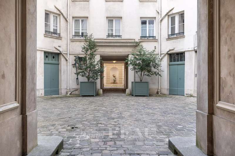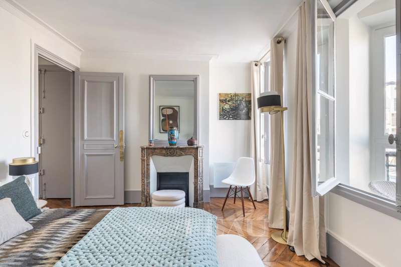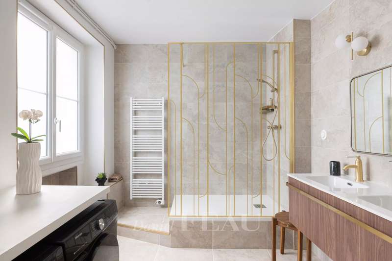 Bourgogne/Varenne neighbourhood. This tastefully renovated 130 sqm triple-aspect apartment is on the 5th floor of a fine freestone building with a lift. Overlooking two peaceful courtyards, it includes a living/reception room with a fireplace, a TV lounge/library, a kitchen with dining facilities, two bedrooms with bath or shower rooms, a study and a dressing room, and a separate wc. The TV lounge could create a third bedroom if required. With a cellar.