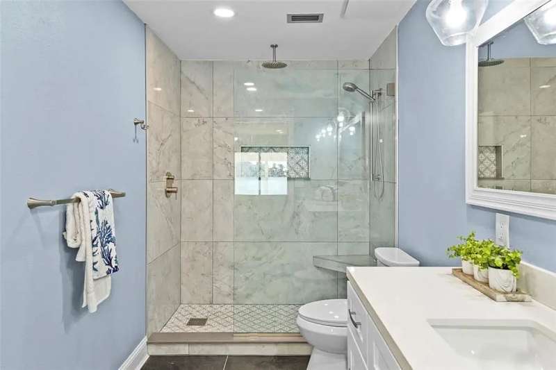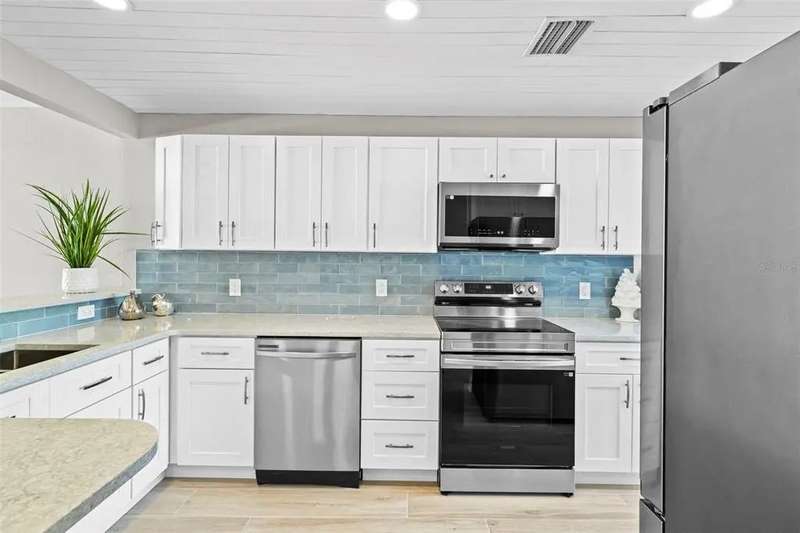 Desirable Gated 55+ Waterfront Boating Community – Boca Ciega Point on the Madeira Beach Intracoastal! You don’t need to be a boater to enjoy this exceptional lifestyle. Welcome to a coveted CORNER Villa (#642 Blvd South), a beautifully fully remodeled, 2-bedroom, 2-bath residence with a den and sweeping south-facing water views. From the moment you enter, you’ll be drawn to the water view, showcased through the bright, open layout and the spacious semi enclosed lanai—an ideal spot for enjoying fresh air, dolphin and manatee sightings, and fishing right outside your villa. The interior has been fully renovated with new flooring throughout, millwork, stainless steel kitchen appliances, cabinetry, remodeled baths, new plumbing, electrical systems, ceiling fans and lighting. The generous primary suite accommodates a king-size+ bed and features an en-suite bathroom and walk-in closet. Unique to this floor plan, the additional den, offers flexibility for an office, hobby room, or guest space. Other Villa features include Hurricane Impact Rated doors and windows, an attached 1-car garage housing a double wash tub, laundry hookups, new water heater, and your very own private courtyard for perhaps grilling or planting herbs/landscape or a place for grandchildren to play! Boca Ciega Point provides a true resort-style experience, offering tennis, a heated pool, pickleball, bocce, ground shuffleboard, a fitness center, card and game rooms. Additional community amenities include, a Boat Club, community grill area, two social rooms, and even a convenient air station for residents’ tires. HOA covers fiber-optic cable and internet, water, sewer, trash, building and flood insurance, exterior maintenance, on-site management and groundskeeping, along with Envera; a virtual gate security system. Association #9 is known for its strong reserves and excellent management. Pet friendly, one pet up to 25 lbs. This prime location sits 2 miles from Madeira Beach’s Archibald Park, where you’ll find a food concession, chair and umbrella rentals, and beautiful sunset views. Restaurants, pubs, Publix, Seminole City Center, Tyrone Mall, marinas, and the VA Hospital are all nearby. Pinellas County’s #1 tourist attraction, John’s Pass Village, provides boat/jet ski rentals, parasailing, dolphin watch tours, fishing tours and more for your visiting guests. Downtown St. Petersburg is nearly 13 miles away offering fantastic night life and the nation’s 3rd longest public waterfront park. The association was impacted by Hurricane Helene. Villa #642 offers the perfect blend of comfort, convenience, and waterfront living—whether you boat or not. Pricing reflects the option for the new owner to install a custom design dock to meet their waterfront needs in PARADISE! Show ready!