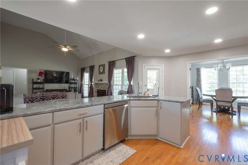 Check out this FANTASTIC, extremely well kept, updated, low maintenance, 3 bedroom, 2 bath, brick rancher. Never worry about losing electrical power with your 22 KW whole house generator. The foyer, dining room, office, family room, kitchen dining area and bedrooms all have gorgeous hardwood floors. Palladian windows, recessed lighting and vaulted ceiling create a bright, cheerful atmosphere. The office, dining room, kitchen and family room create a great flow for entertaining. The gourmet kitchen has a huge L shaped counter with a stainless steel sink, granite counter tops and stainless steel appliances. The primary suite has a vaulted ceiling and a gas fireplace with marble surround. The spacious ensuite has a jetted, oversized tub, dual vanities, a separate shower AND a gas fireplace. With the split floor plan the primary bedroom and ensuite and bedrooms 2 and 3 are at the opposite ends of the home. There is a 12 x 20, covered rear deck with a ceiling fan for enjoying your morning coffee or relaxing during the mild seasons. Your new home has high speed internet through Xfinity. This property is conveniently located halfway between exits 48 and 53 if I-85, 25 minutes from Colonial Heights, 45 minutes from Richmond and about halfway between Fort Barfoot and Fort Gregg-Adams.