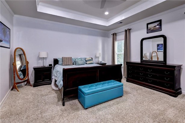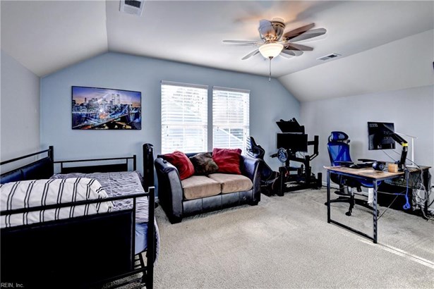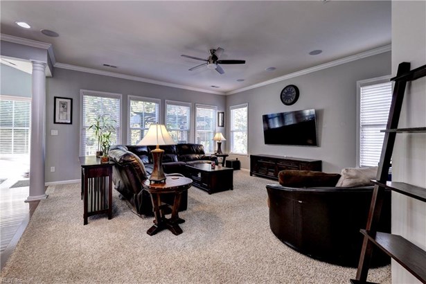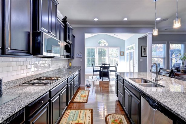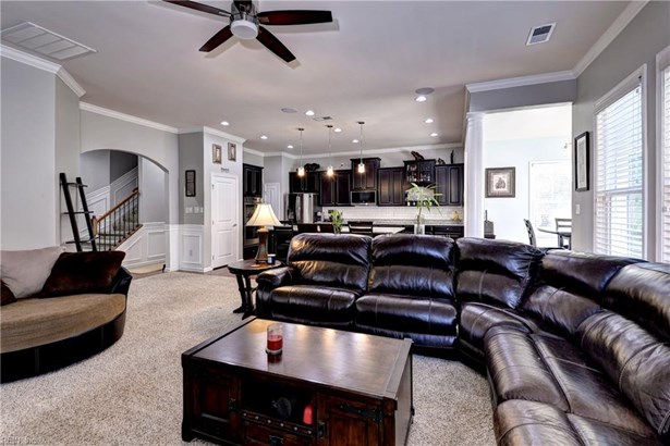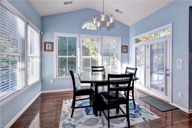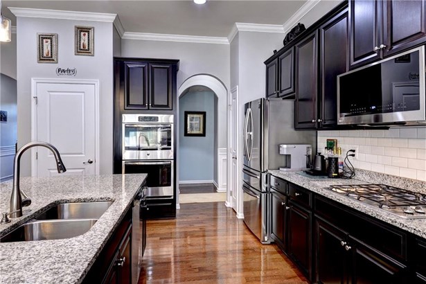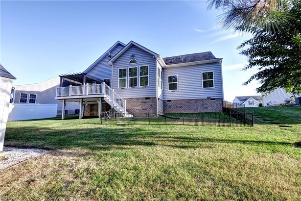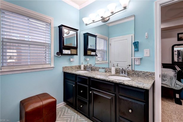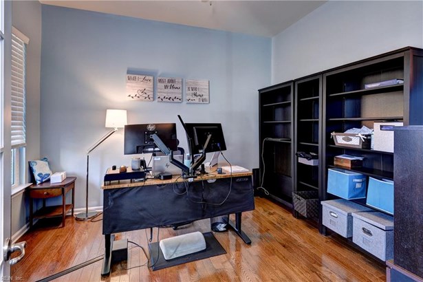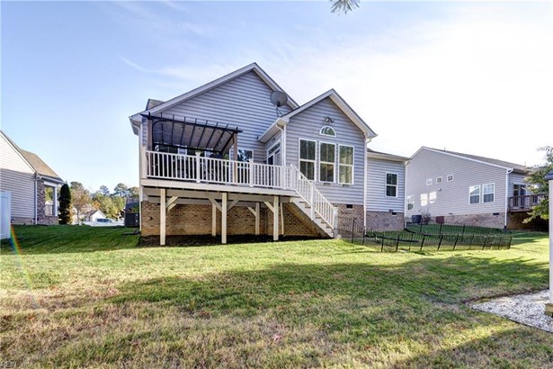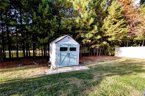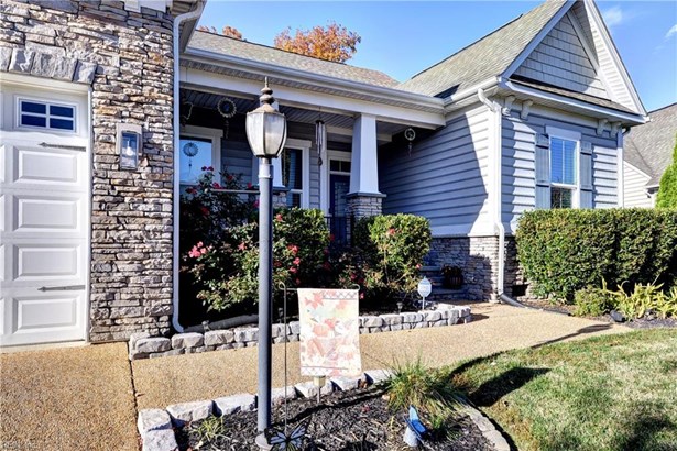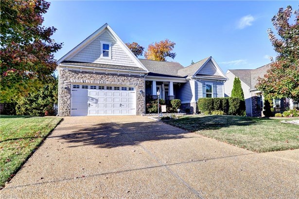 Welcome to Windmill Meadows, where this inviting craftsman home features a welcoming front porch and backs to peaceful woods with a view of the pond just beyond. The bright, open layout brings in plenty of natural light throughout the kitchen, dining area, and spacious family room. French doors lead to a designated office, offering a quiet space for work, study or other. The kitchen includes two pantries, a double wall oven, and a large island with seating for four—ideal for everyday living and gathering. The first-floor primary suite features custom-built closets, dual sinks and a sizable shower. Upstairs a second ensuite bedroom with walk-in closet offers flexible space for guests or hobbies. Two walk-in attic areas provide convenient storage. Laundry is located on the first floor with direct access to the garage. Enjoy relaxed living close to walking trails, shopping, dining, and all that Williamsburg offers.
