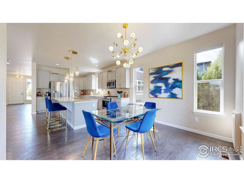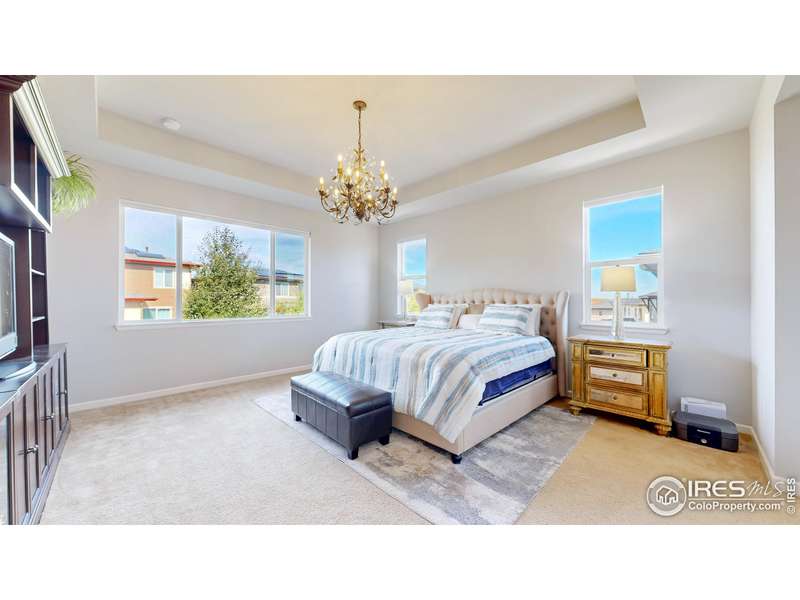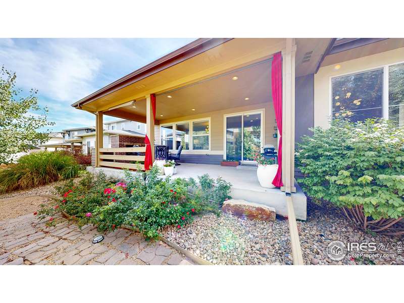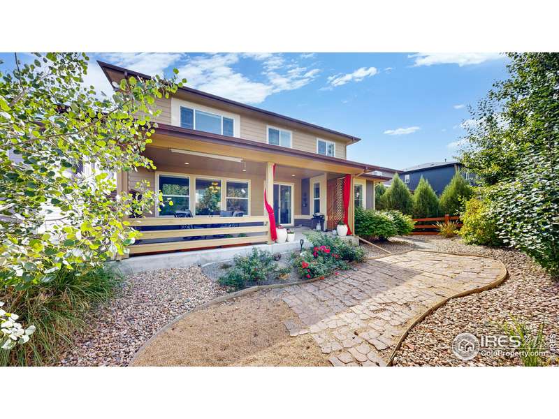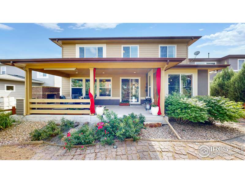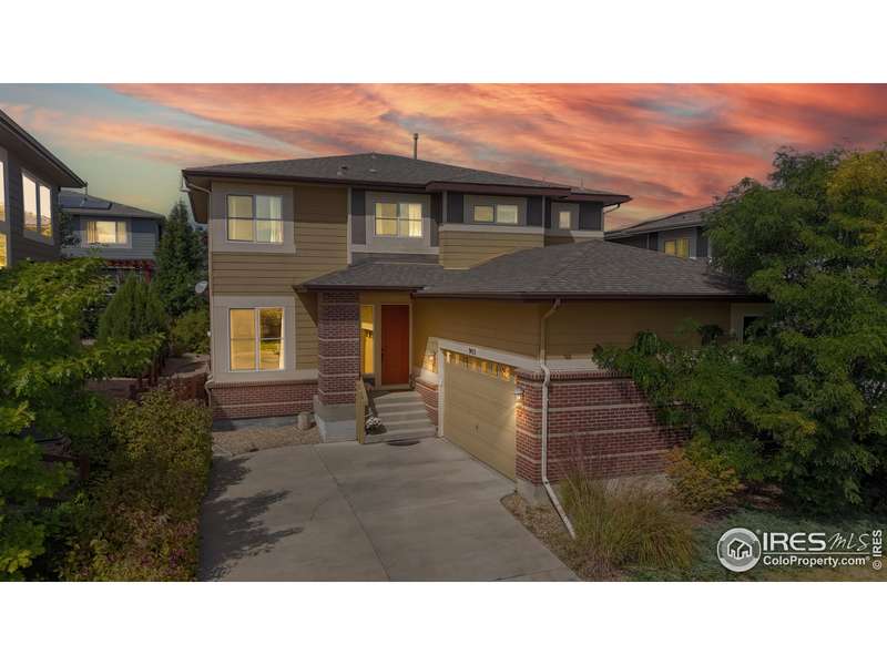 Bright and open, this 2 story home in the Candelas neighborhood features a spacious great room and gourmet kitchen with oversized island, large walk-in butler's pantry, updated gas stove and stainless appliances. Main floor also includes an oversized home office, powder bath and mudroom off the garage. Upstairs you'll find four bedrooms including a shared bathroom. The elegant primary suite features a tray ceiling and abundant natural light. Step inside the primary bathroom - a tranquil space with separate vanities, a sunken soaking tub and a extra large shower with dual shower heads. The walk in closet flows directly into the laundry room. The partially finished basement offers tall ceilings, a large rec room, fifth bedroom, full bath and abundant storage. Enjoy year-round entertaining on the covered deck with outdoor fireplace and low-maintenance xeriscaped backyard. Walking distance to pools, fitness centers, parks and trails, with shopping and dining just minutes away. Buyers to assume Tesla solar lease at $25/month. Some furniture is available for purchase.