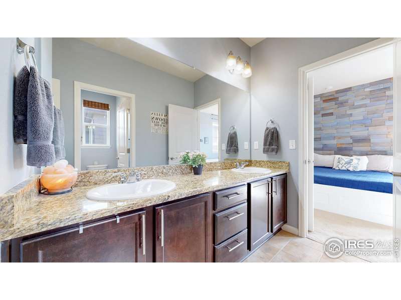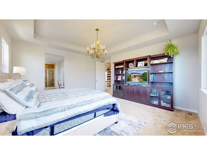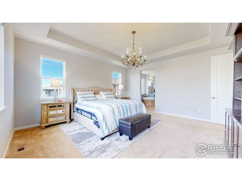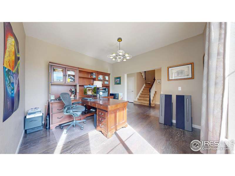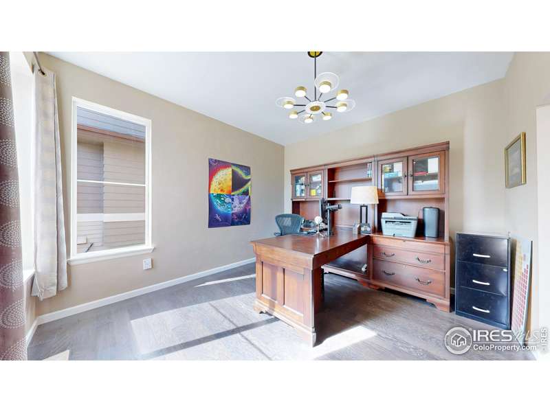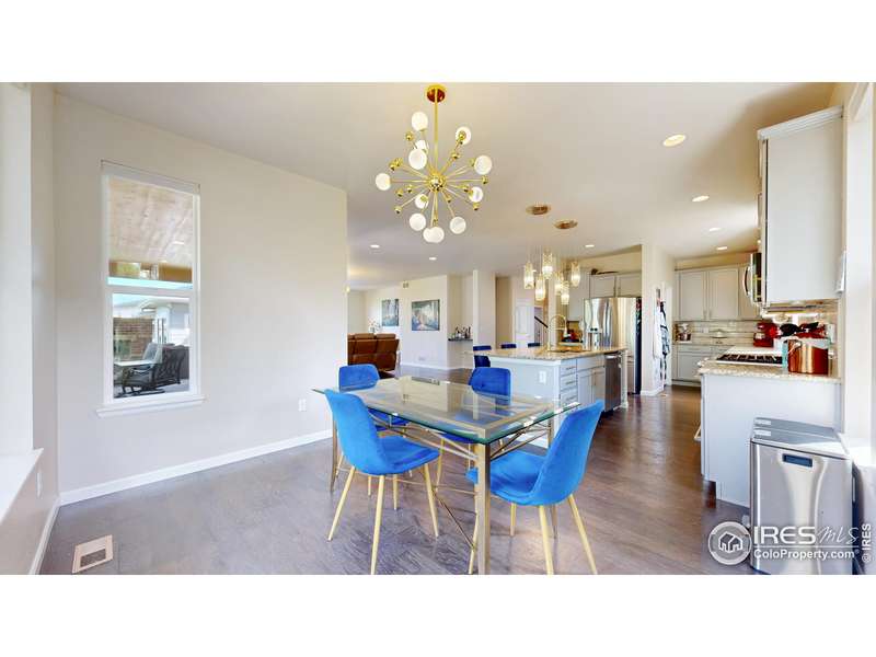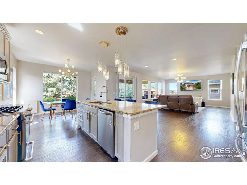 Bright and open, this 2 story home in the Candelas neighborhood features a spacious great room and gourmet kitchen with oversized island, large walk-in butler's pantry, updated gas stove and stainless appliances. Main floor also includes an oversized home office, powder bath and mudroom off the garage. Upstairs you'll find four bedrooms including a shared bathroom. The elegant primary suite features a tray ceiling and abundant natural light. Step inside the primary bathroom - a tranquil space with separate vanities, a sunken soaking tub and a extra large shower with dual shower heads. The walk in closet flows directly into the laundry room. The partially finished basement offers tall ceilings, a large rec room, fifth bedroom, full bath and abundant storage. Enjoy year-round entertaining on the covered deck with outdoor fireplace and low-maintenance xeriscaped backyard. Walking distance to pools, fitness centers, parks and trails, with shopping and dining just minutes away. Buyers to assume Tesla solar lease at $25/month. Some furniture is available for purchase.