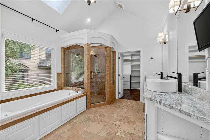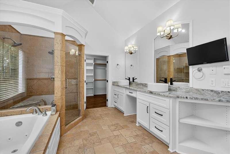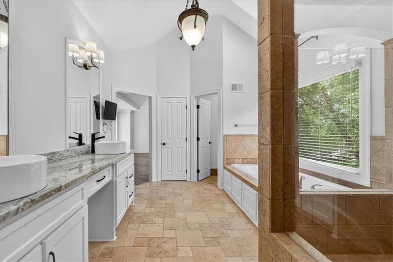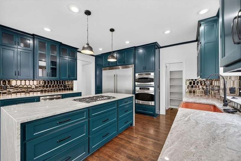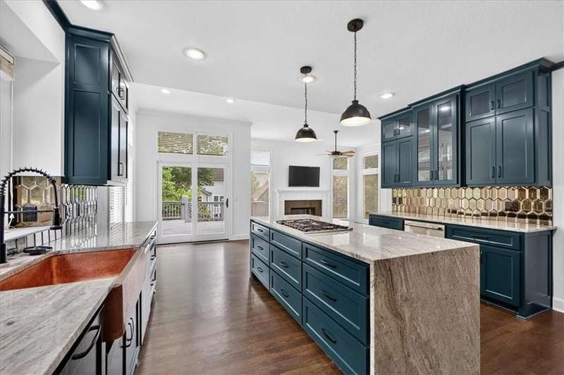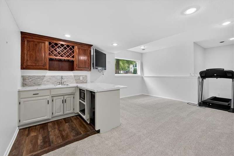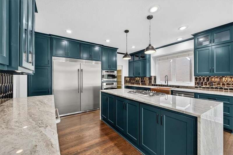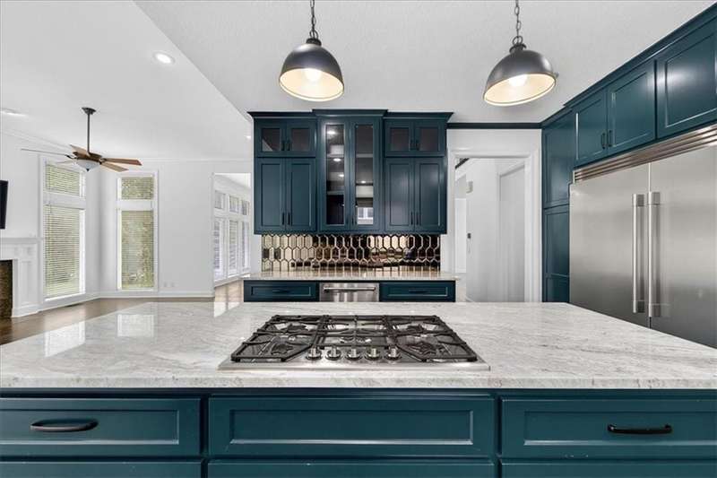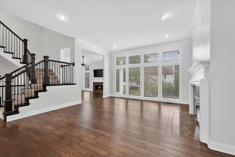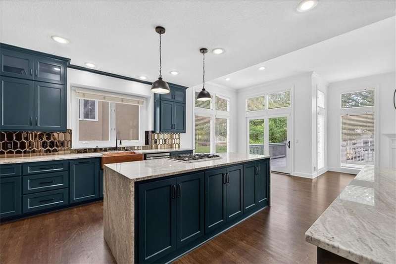 Stunning 1.5 story home in the highly sought-after Lionsgate community with over 5,000 finished sq ft of beautifully maintained living space. This 5 bed, 4.5 bath home offers a spacious and functional layout with hardwood floors throughout the main level. The newly remodeled kitchen features granite countertops, stainless steel appliances, large center island, walk-in pantry, and modern cabinetry, perfect for entertaining and everyday living.The spacious main-floor primary suite includes an updated primary bathroom. Upstairs you'll find generously sized bedrooms and full baths with ample closet space. The finished walkout basement offers a large rec room, additional bedroom and full bath ideal for guests, a home gym, or theater room.Additional highlights include a deep 3-car garage, formal dining room, main-floor laundry, and a beautifully landscaped yard with patio space. Located in the award-winning Blue Valley School District and within walking distance to trails, parks, and neighborhood amenities including a pool, clubhouse, tennis courts, and playgrounds. Close to top-rated schools, shopping, dining, and easy highway access, this move-in-ready home blends comfort, space, and location in one of Overland Park's most desirable neighborhoods.