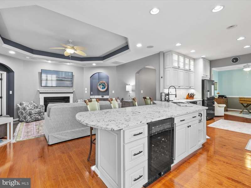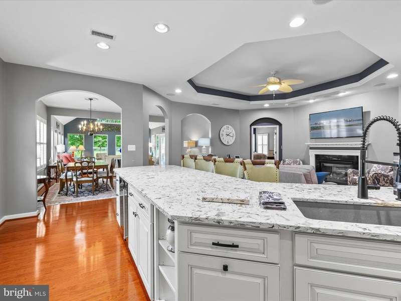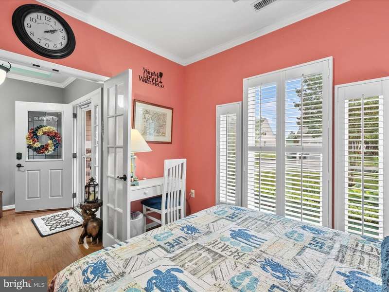 Bring an Offer, Motivated Seller! Elegant living on the pond in the sought-after community of Seagrass Plantation. This beautifully updated 4-bedroom, 2-bath home blends luxurious upgrades with serene natural views, offering the perfect combination of comfort, style, and tranquility. Step inside to find a thoughtfully designed 1-level floor plan featuring hardwood flooring throughout the main living areas and the owner's suite. The heart of the home is the extensively renovated kitchen, a true chef's delight, with high-end cabinetry, quartz countertops, soft-close and roll-out drawers, a large peninsula, wall oven, combination microwave/convection oven, wine fridge, and additional custom details. Adjacent to the kitchen is a bright office space with timeless trim and paint details. Enjoy the spacious rear sunroom addition, a perfect retreat to unwind while overlooking the picturesque pond and wildlife framed by mature trees. The views continue outside to a professionally landscaped yard, rear patio - ideal for entertaining or quiet reflection. The Owner's Suite is a sanctuary of its own with a tray ceiling, two large walk-in closets, and double doors opening to a spa-inspired en-suite bath. Indulge in a soaking tub, walk-in tiled shower, dual vanities with smart mirrors, and a private water closet. Plantation shutters throughout the home provide an elegant touch and enhanced privacy. Additional exterior features include a finished garage with drywall, paint, and epoxy flooring for a polished look; a paver-lined driveway; and a tasteful side garbage can enclosure. Accessibility features include a level entryway, wide hallways, and grab bars installed in the showers. You and your guests will enjoy exceptional amenities in this vibrant waterfront community: tennis and pickleball courts, swimming pool, clubhouse, private beach, community gazebo, and included lawn care and trash pickup. Don't miss this opportunity to live in one of southern Delaware's most desirable neighborhoods, just minutes from beaches, dining, and shopping. Schedule your private showing today!