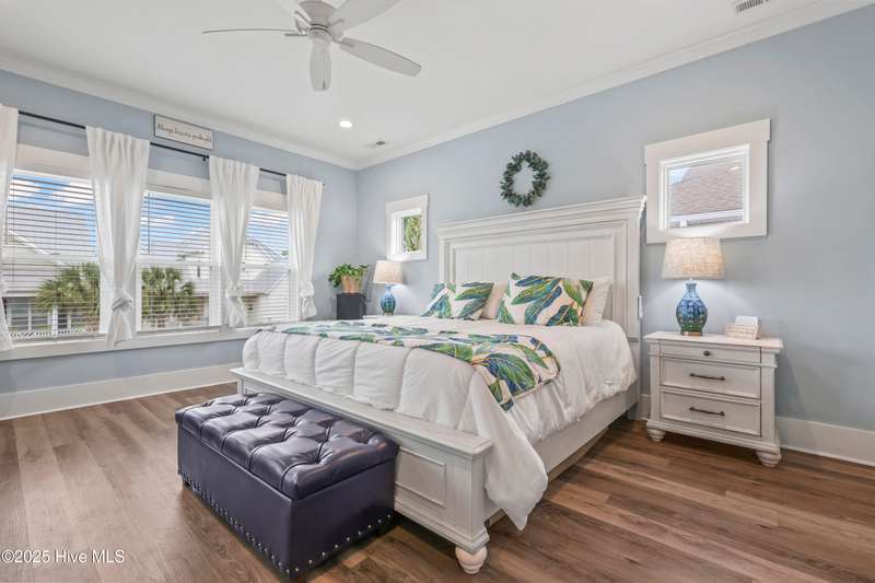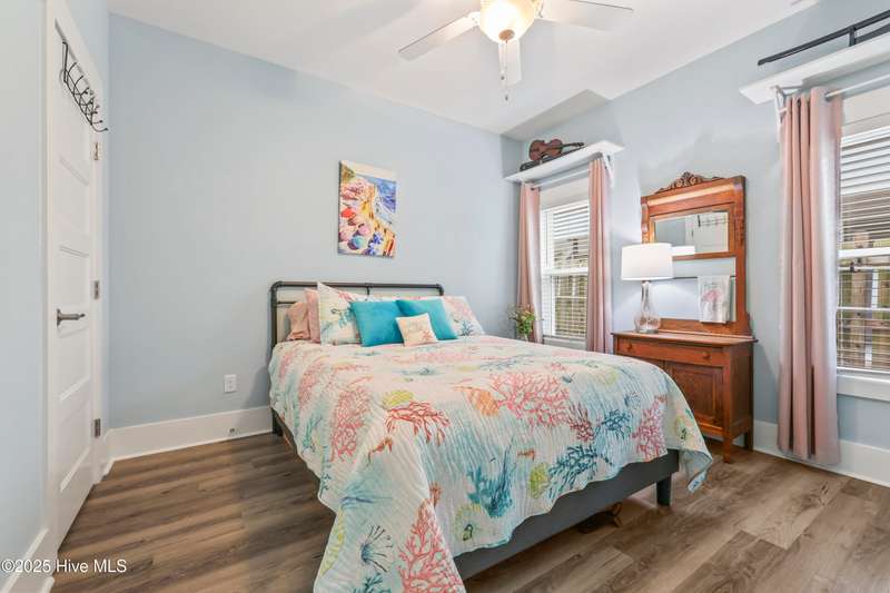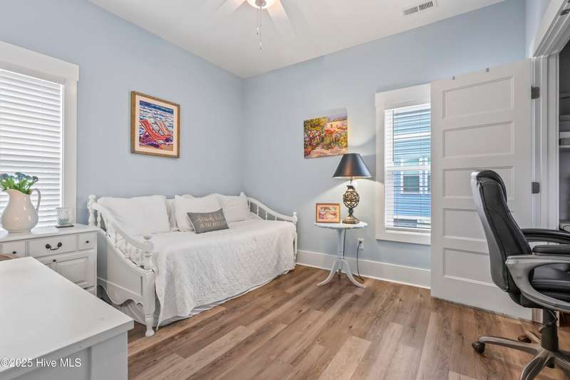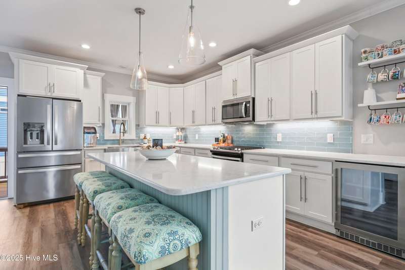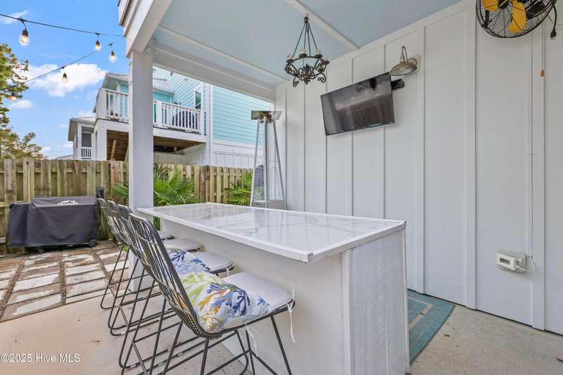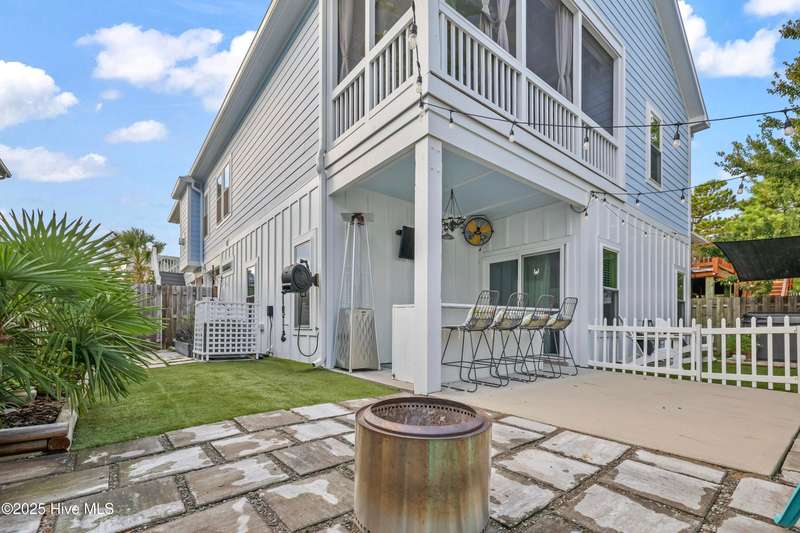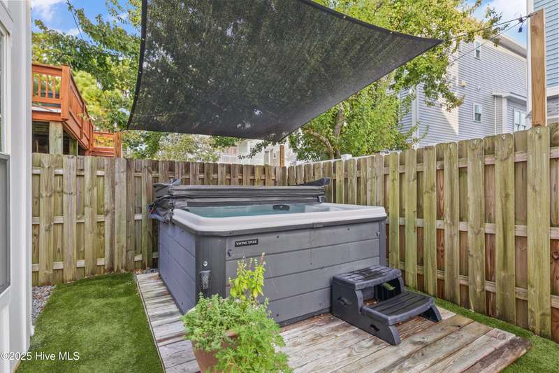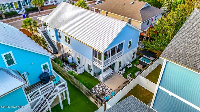 Back on the Market-Buyer could not perform-No inspections were done. Move-In Ready Mid-Island Beauty on one of the prettiest, peaceful streets. All the work has been done for you! Ideally located north of Ocean Ave and out of the flood zone, this home sits on a palm-tree-lined street across from Seagrove, six blocks from the beach and close to the Greenway. No governance from an HOA here allows for use of your property as you see fit. Quality construction features ColorPlus James Hardie siding (no painting required), impact windows, metal roof, buried utilities, owned propane tank, and separate irrigation meter. Reverse-living floor plan offers approximately 2,449 sq ft with four bedrooms, three full baths, and a large media room with kitchenette. Open main living area includes a gas fireplace and sliders to the covered front porch. A split bedroom layout on both floors provides privacy for all. The kitchen offers an oversized island, quartz countertops, custom painted cabinets, stainless farmhouse sink, beverage fridge, gas five-burner range with convection oven, built in microwave, pantry, coat closet, and stainless appliances. Primary suite features two walk-in closets and a tile bath with large walk-in shower, dual shower heads, bench, and glass doors. Outdoor living includes two covered porches (rear screened, front with manual shade) and a covered back patio overlooking a fully fenced backyard with bar, hot tub, low-maintenance grass turf, pavers, lighting, and mature landscaping. Additional features include an oversized one-car garage with interior and exterior storage closets, floored attic storage, parking for five to six cars, wood interior stairs, exterior stairs, handicap-accessible entry, laundry closet off kitchen, and two-zone 14 SEER HVAC. Termite, fireplace, and ext. maint. reports, survey available. All the ''things'' have been donemove right in. Built 2019 by Dutch Built Homes. Property did not flood or have standing water in storm September 202