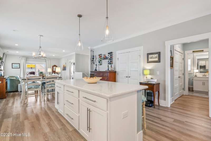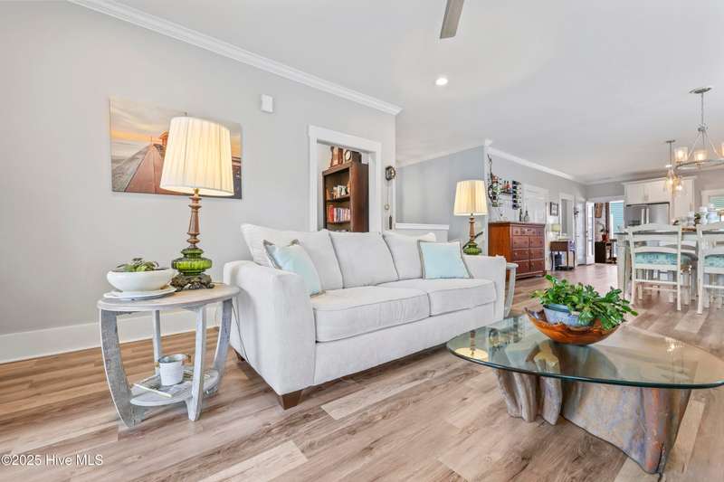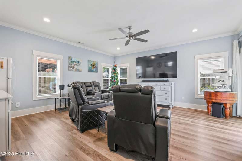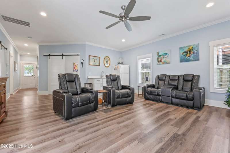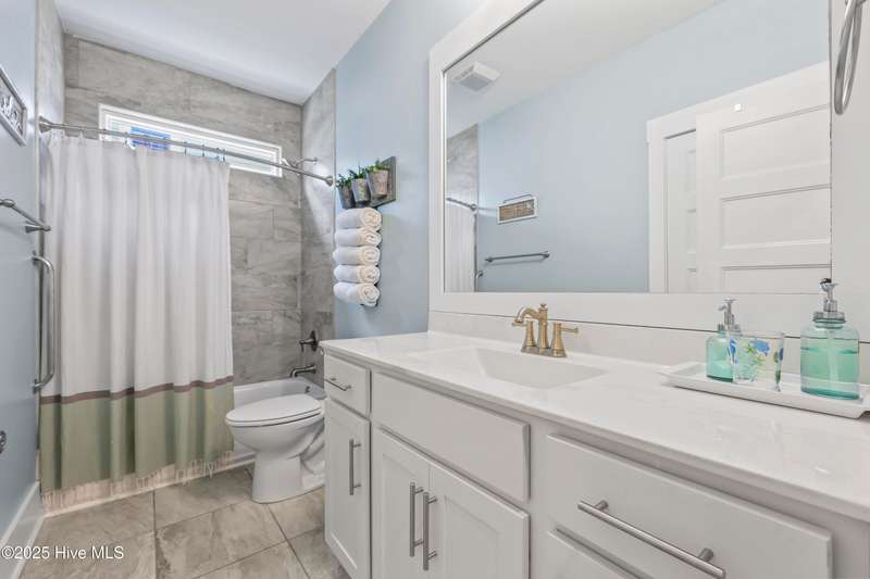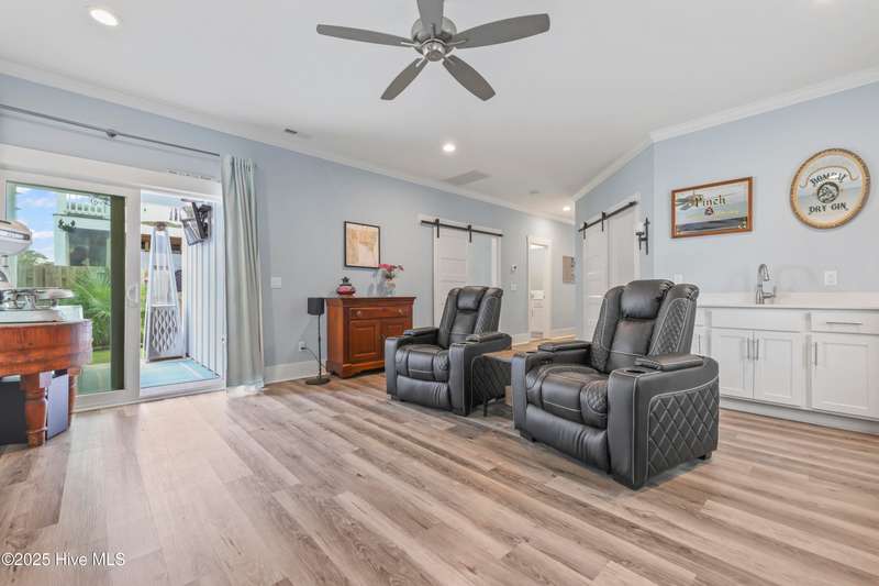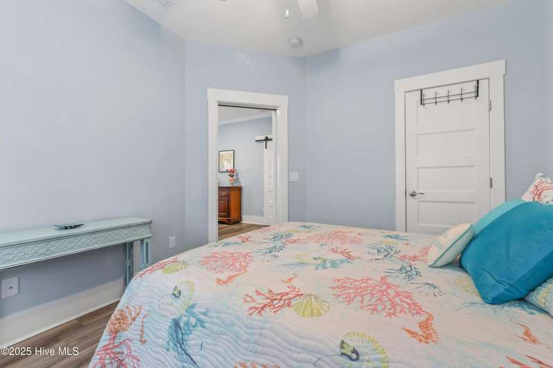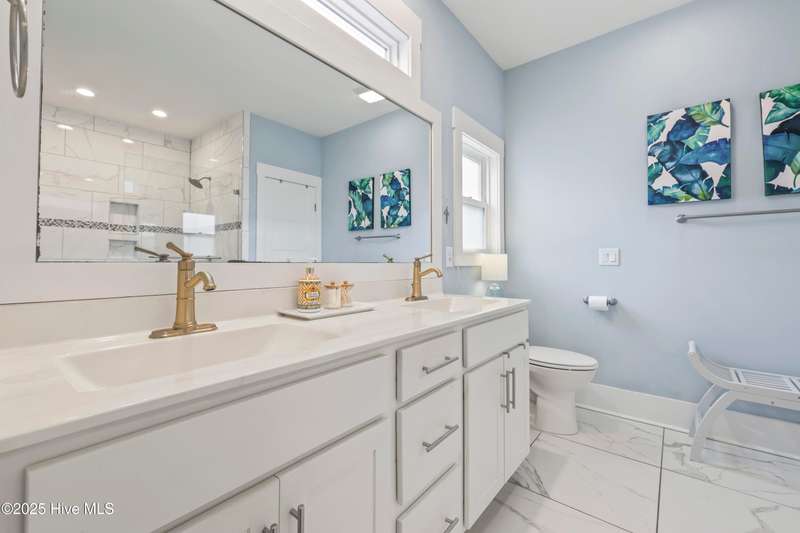 Back on the Market-Buyer could not perform-No inspections were done. Move-In Ready Mid-Island Beauty on one of the prettiest, peaceful streets. All the work has been done for you! Ideally located north of Ocean Ave and out of the flood zone, this home sits on a palm-tree-lined street across from Seagrove, six blocks from the beach and close to the Greenway. No governance from an HOA here allows for use of your property as you see fit. Quality construction features ColorPlus James Hardie siding (no painting required), impact windows, metal roof, buried utilities, owned propane tank, and separate irrigation meter. Reverse-living floor plan offers approximately 2,449 sq ft with four bedrooms, three full baths, and a large media room with kitchenette. Open main living area includes a gas fireplace and sliders to the covered front porch. A split bedroom layout on both floors provides privacy for all. The kitchen offers an oversized island, quartz countertops, custom painted cabinets, stainless farmhouse sink, beverage fridge, gas five-burner range with convection oven, built in microwave, pantry, coat closet, and stainless appliances. Primary suite features two walk-in closets and a tile bath with large walk-in shower, dual shower heads, bench, and glass doors. Outdoor living includes two covered porches (rear screened, front with manual shade) and a covered back patio overlooking a fully fenced backyard with bar, hot tub, low-maintenance grass turf, pavers, lighting, and mature landscaping. Additional features include an oversized one-car garage with interior and exterior storage closets, floored attic storage, parking for five to six cars, wood interior stairs, exterior stairs, handicap-accessible entry, laundry closet off kitchen, and two-zone 14 SEER HVAC. Termite, fireplace, and ext. maint. reports, survey available. All the ''things'' have been donemove right in. Built 2019 by Dutch Built Homes. Property did not flood or have standing water in storm September 202