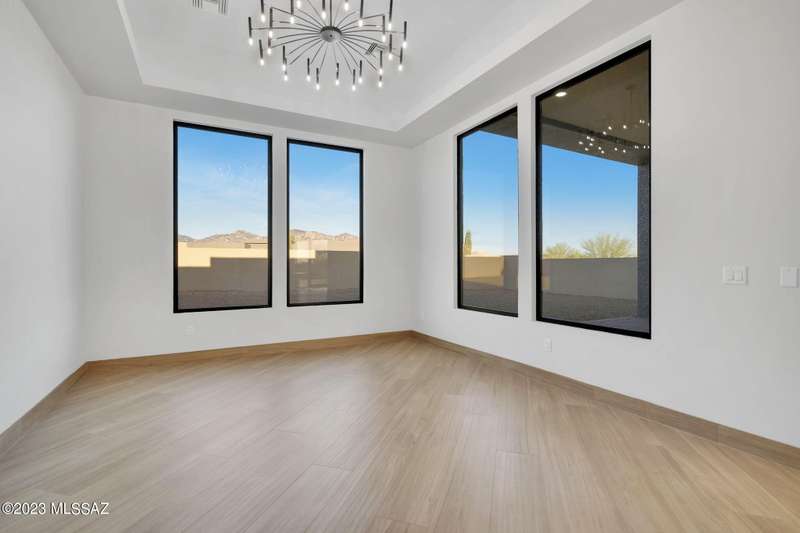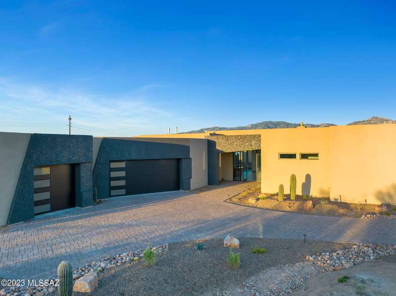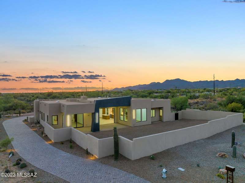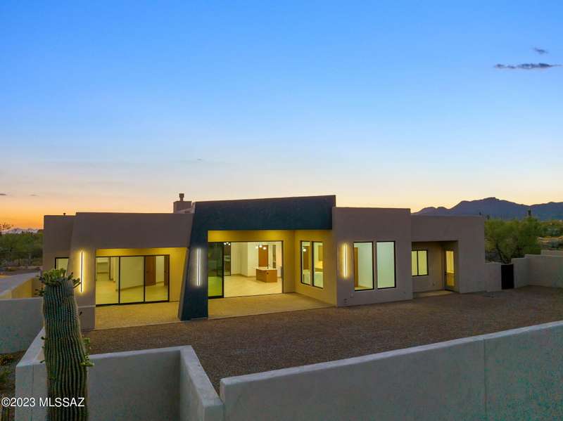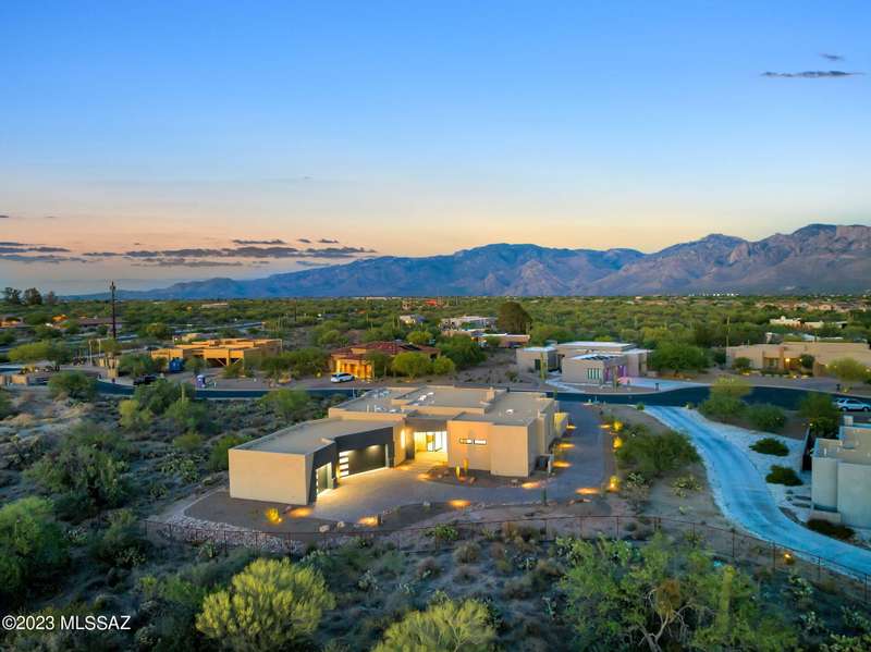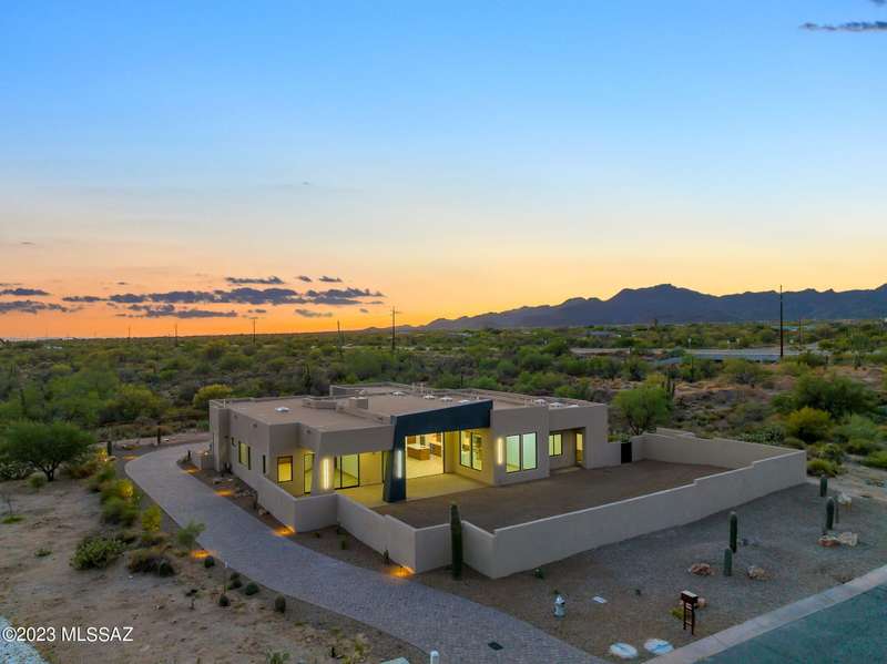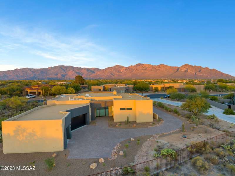 Construction just started. Price range $1,850,000- $2,300,000. Spectacular Contemporary in Oro Valley on 3.4 acre lot by award winning builder Homes by Copper Canyon. 4 bdrm 3 1/2 bath home with back facing east to capture Catalina Mtn views. Open floorplan that flows from great room to kitchen and dining nook. Features include 15' Retractable sliding door, 5' glass pivot entry door with sidelights. High end finishes throughout. The pictures are of this same floorplan built and occupied on another lot in the community. Builder just broke ground in March 2025.