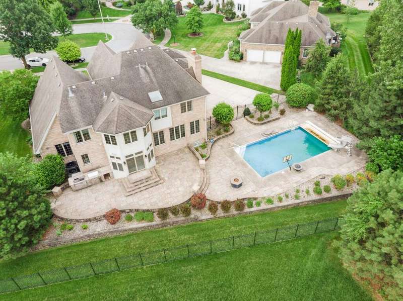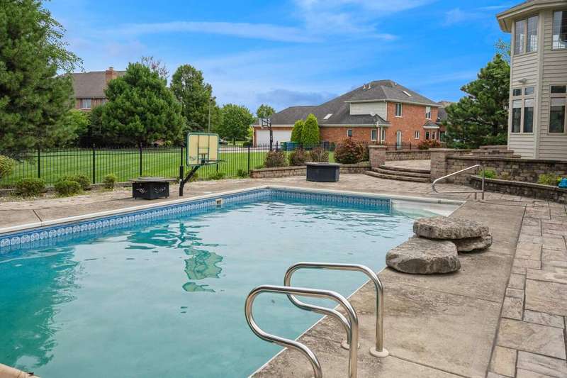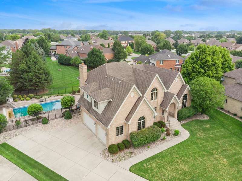 Beautiful and stately, this single-family home is ideally located in the sought-after White Oak Estates. Tucked away on a quiet cul-de-sac, this spacious and meticulously maintained 4-bedroom, 3.5-bath residence offers the perfect blend of comfort, functionality, and resort-style outdoor living-including an in-ground swimming pool with slide, surrounded by manicured lush landscaping. A grand two-story foyer welcomes you in and leads to a spacious formal living and dining room, perfect for gatherings of any size. Surround sound is located in various rooms throughout. The main floor features a large, light-filled living room with a cozy fireplace and a separate formal dining room-ideal for hosting. At the heart of the home is a stunning custom chef's kitchen, complete with top-of-the-line appliances, granite countertops, abundant cabinetry, and an oversized center island with counter seating. There is an additional kitchen area perfect for an informal sitting area or eat-in space with direct access to the backyard, which also boasts an impressive stainless steel Viking outdoor kitchen with an oversized patio area-perfect for summer entertaining. A dedicated executive home office, a stylish half bath, side-by-side laundry, and an attached 3-car garage complete the main level. An oversized driveway offers additional space for 4+cars. Upstairs, you'll find four generous bedrooms-including two ensuite bedrooms and two additional bedrooms which share a Jack-and-Jill bath. The luxurious primary suite offers a private sunroom, walk-in closets and a spa-like bath with a double vanity, jacuzzi soaking tub, and separate shower. The finished basement is an entertainer's dream, featuring an amazing plush 8-seat home theater with surround sound, a kitchenette and bar area, a separate dining area, a large family room, a full bathroom, and ample storage. There's even potential for a fifth bedroom.