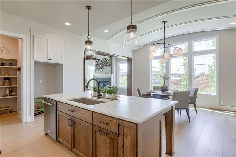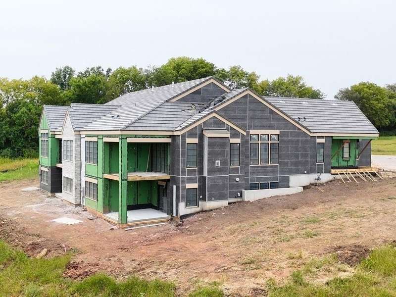 THE BELMONT EXPANDED BY LAMBIE HOMES – AVAILABLE DECEMBER 2025! This reverse 1.5 story paired villa offers 3,883 sq ft of luxury living on walkout Lot 9/D17 in Regents Park. Set on a desirable walkout lot, this home maximizes indoor and outdoor living with a covered deck off the main level and a finished lower level that opens to a patio. It’s an entertainer’s dream—plenty of natural light downstairs, seamless flow to outdoor spaces, and room to host gatherings year-round. The Belmont Expanded builds on one of Lambie’s most popular plans with additional square footage and a spa-inspired primary suite featuring a free-standing soaking tub and zero-entry shower. The open main level showcases tall ceilings, a chef’s kitchen with custom cabinetry, oversized island, walk-in pantry, and spacious great room. With 4 bedrooms and 3 baths, the plan also includes a versatile main-level guest suite or office. The walkout lower level adds a large family room, game area, wet bar, and two additional bedrooms. Premium details include wide-plank hardwoods, quartz countertops, custom trim, and designer finishes throughout. Outside, Regents Park’s signature elevated look includes stone and stucco exteriors, black concrete tile roofs, and professionally designed landscaping. As one of Leawood’s last remaining luxury villa and single-family home communities, Regents Park features private amenities such as a pool and pavilion, pickleball courts, dog park, and walking trail. You’re just moments from vibrant shopping and dining along 135th Street. Don’t miss this rare opportunity—stop by our model home today to learn more about this home or additional inventory and building sites for both paired villas and single-family homes! Progress photos and images of the completed model are shown.