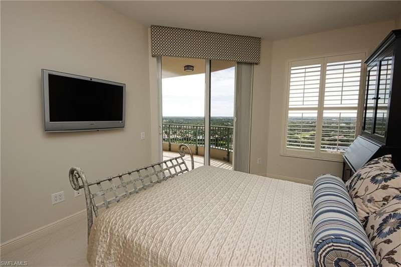 This 2 bedroom, den, and 3 full bath residence in Treviso at the Colony at Pelican Landing home. Enjoy the panoramic view this 15th floor unit has to offer. Elegant appointments including granite, private elevator, oversized screened terraces with breathtaking views of the golf course, Gulf and Bay! Upon entering foyer this great room floor plan opens to an inviting tiled living space then a morning room area, family room setting with TV, a dining room with seating for 6 people. The fully equipped kitchen with center island and spacious breakfast bar, den with built-in desk and sleeper sofa, and laundry room. The master suite has a king bed, ensuite bathroom and gorgeous views of the gulf. The guest bedroom has a king bed, walk-in closet and slider to open air balcony. Treviso has all the privileges of a private club including Social Room with billiards, theater, boardroom, two spacious guest suites, on-site resident manager, free from pool and waterfall. Pelican Landing amenities include a watercraft shuttle, which provides transportation to and from beach park, canoe park, state-of-the-art fitness, and tennis.