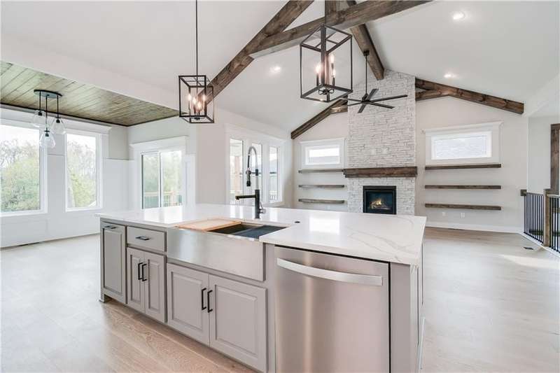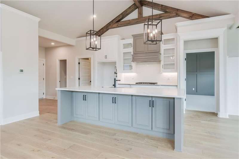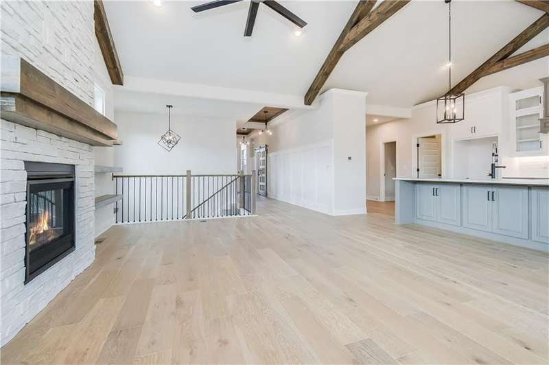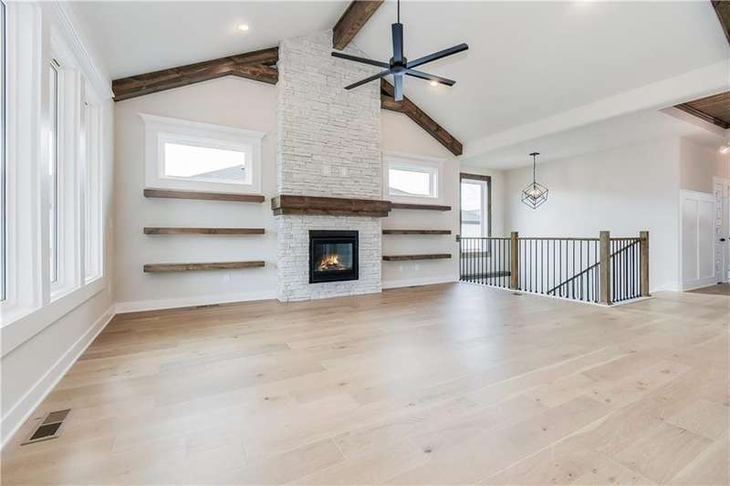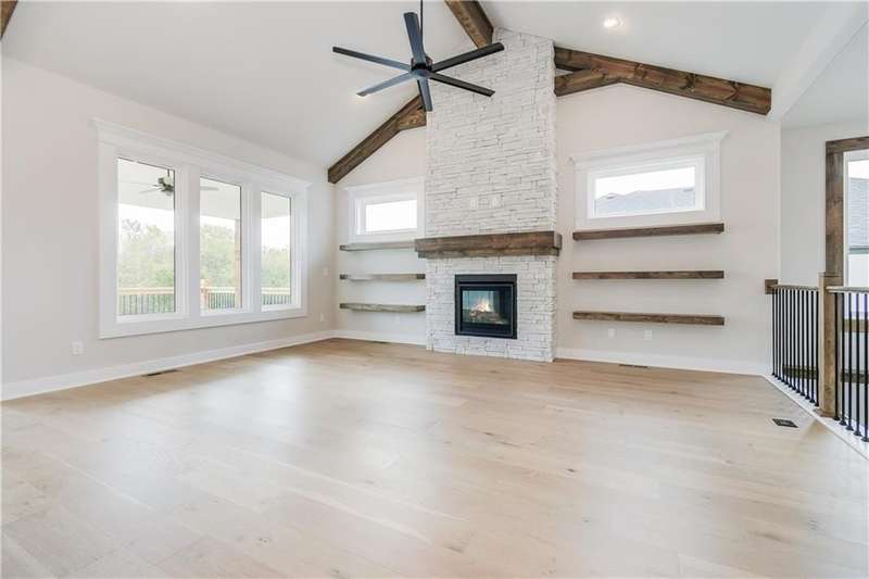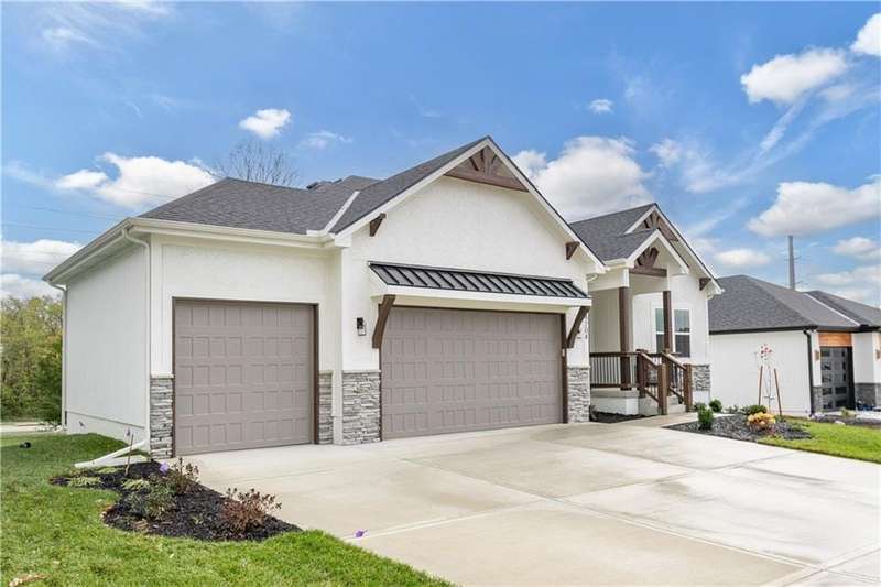 TruMark Custom Homes presents the Kyle IV Reverse 1.5 Story in Eagles Creek of Blue Springs! Pictures are of a completed Kyle IV down the street. Some details may vary. House is in the mechanicals stage. Popular Kyle IV plan with beautiful open spaces, beams, shiplap, wood and stone. You will love the prep kitchen, huge quartz island, and floor to ceiling details throughout! Master Suite and 2nd bedroom and home office and 2 full and 1 half baths on the main floor. Lower level with additional 3 bedrooms, large family room with wet bar, gift wrapping/craft room and 2 full baths. Home will have a covered deck with stairs to the backyard.