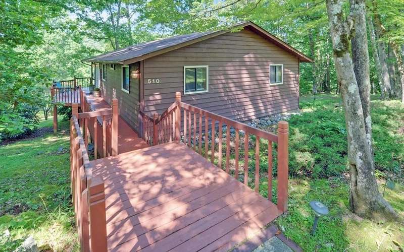 Tired of tight lots and rules? This 2-acre ranch offers freedom, privacy, and room to breathe. Start your mornings on the covered porch with coffee in hand, a gentle branch nearby, and space for pets, gardens, or play. Inside, the updated kitchen with breakfast bar is perfect for casual meals and easy entertaining, while French doors connect seamlessly to the deck. The great room's wood-burning stove brings a warm welcome after a long day. The primary bedroom is on the main floor, and thoughtful upgrades like central air and double-pane windows keep life comfortable year-round. A finished walk-out basement adds a family room, bonus room, full bath, and laundry, ideal for guests, hobbies, or work-from-home flexibility. Outside, a lower patio leads to a manicured lawn, and the private well is shared with just one neighbor. Located minutes from scenic drives, trails, local dining in Murphy or Andrews, and Harrah's casino and entertainment.