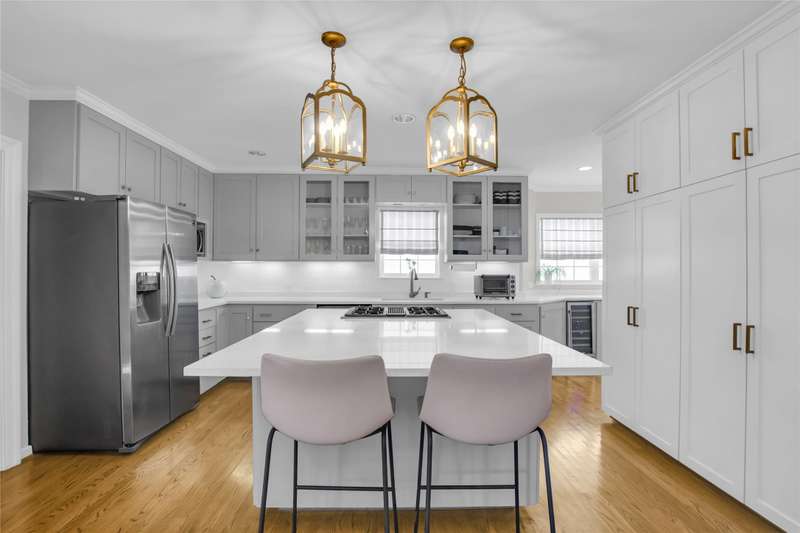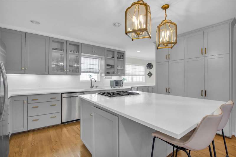 Charming Tudor with timeless appeal and stunning blonde hardwood floors. Spacious Living and Family Rooms provide plenty of space to relax or entertain. Two primary suitesone upstairs and one downideal for flexible living. The remodeled kitchen features a large island, stainless steel appliances, and a seamless flow into the Family Room and new wet bar. A convenient butlers pantry connects the Kitchen and Dining Room. Exceptional storage throughout, including two large attics. Enjoy low-maintenance turf in the front yard and a brand-new pool in the back. This gem even includes a generator. A warm, inviting home filled with character and modern comfort!