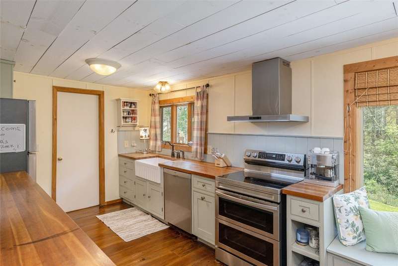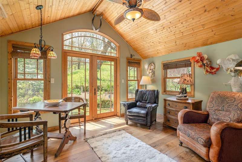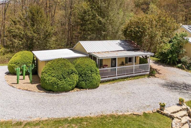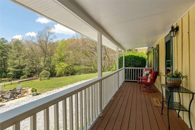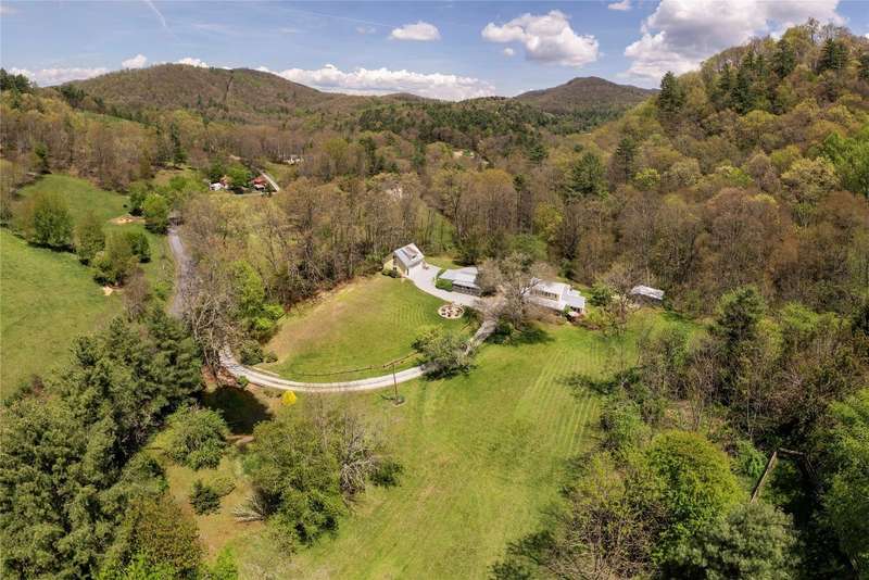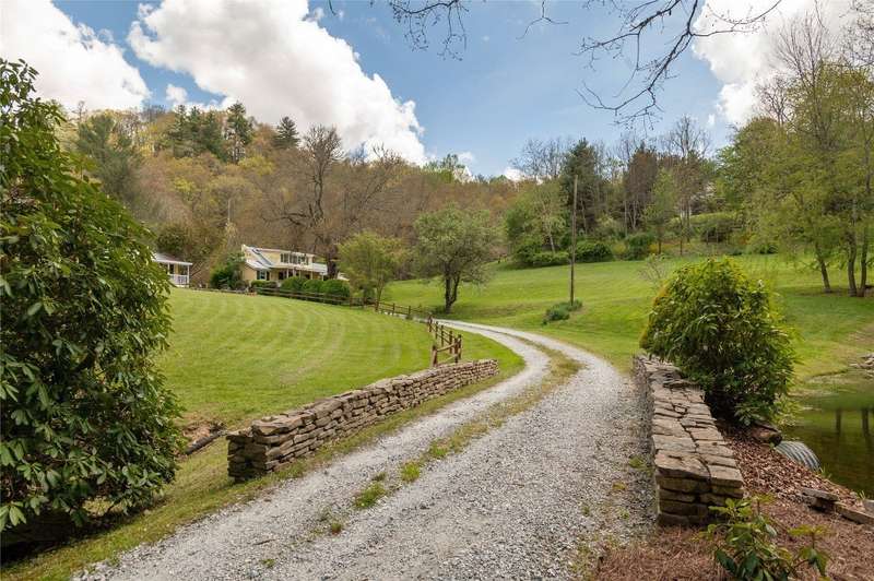 Discover a rare offering at Pepper's Creek - a 1930 farmhouse estate brimming with charm, acreage, and endless possibilities, just minutes from Lake Glenville and the quaint town of Cashiers. Nestled on approximately 3.9 unrestricted, gently rolling acres, Pepper's Creek is a meticulously maintained treasure where enduring beauty and thoughtful modern updates coexist in perfect harmony. A stone bridge over a picturesque pond provides a warm welcome to this serene property, where the updated main farmhouse features wide-planked hardwood floors, a spacious walk-in pantry, a functional mudroom, and abundant natural light. The enchanting morning room, anchored by a two-sided fireplace, offers a cozy, sun-filled space to begin each day. Rolling pastures dotted with apple trees, a tranquil stream, a whimsical treehouse, and a peaceful pond create an idyllic, storybook setting where morning mist and the fresh scents of nature greet you daily. Additional structures include an immaculate oversized two-car garage with a beautifully finished guest apartment above, a charming bunkhouse, a freestanding workshop with a rare spring cellar ideal for wine storage, and a separate storage building for lawn equipment. Every inch of this estate reflects exceptional care, with fresh interior and exterior paint completed in 2024, cedar shake accents, durable metal roofing, and a generator for peace of mind. The unrestricted land offers limitless possibilities for livestock, vegetable gardens, or simply enjoying wide-open spaces under the Carolina sky. A covered front porch and a circular driveway add the finishing touches to this turnkey mountain estate. Pepper's Creek is more than a property - it is a lifestyle, a legacy, and a unique opportunity to own a piece of history in one of the most sought-after locations in the Blue Ridge Mountains. Lovingly cared for and updated over the years, this timeless estate creates a story where historic charm meets modern living.
