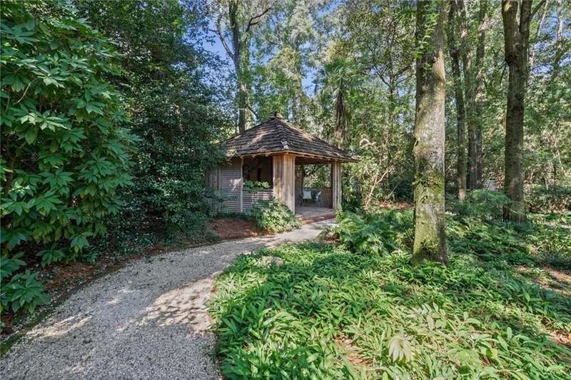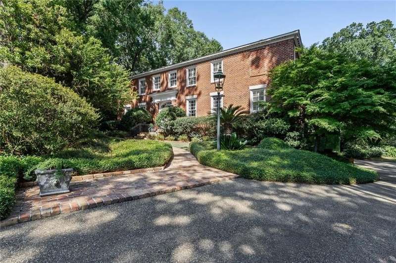 Rare opportunity for an exquisite Spring Hill Estate with timeless architecture and lush gardens! Tucked away at the top of the Pinebrook neighborhood in the heart of Spring Hill, this exceptional property offers rare privacy amid 1.2 acres of amazing, landscaped grounds. Designed by renowned architect Eugene H. Gray, this 4-bedroom, 3.5-bath residence showcases over 5,000 square feet of living space surrounded by garden vignettes featuring sculptures, a pergola, fountains, a gazebo, and variety of mature plants and trees. Built in 1978, the home exudes classical elegance with grand proportions and exquisite architectural details sourced from New Orleans, Philadelphia, and France. The gracious living and dining rooms are ideal for entertaining, while the handsome wood-paneled study with deep crown molding and a wood-burning fireplace offers an inviting retreat. A bright, spacious sunroom spans the back of the home, opening onto a flagstone terrace that overlooks the gardens- perfect for gatherings. The chef’s kitchen is beautiful and functional, featuring high-end appliances and abundant custom cabinetry. A charming breakfast room adjoins the kitchen. A first-floor bedroom with ensuite bath provides flexibility for a potential downstairs primary suite. The luxurious primary suite and private office occupy half of the second floor, highlighted by a stunning Alabama white marble bath and two lovely closets. Two additional large bedrooms upstairs with a shared bath offer generous closet space. Additional amenities include a wine cellar, whole-house generator, half bath in garage, large walk-in attic, plantation shutters upstairs, an under-house two-car garage with ample storage, plus a wine cellar with its own cooling system. From its architectural pedigree and refined interiors to its lovely gardens and serene setting, this home embodies the best of Spring Hill living—timeless, elegant, and truly one-of-a-kind. Make your appointment today to see this Spring Hill gem!