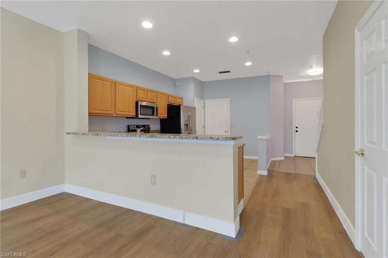 Long-term rental available in the desirable Stratford Place community! This spacious home features 3 bedrooms and 2.5 bathrooms with an open kitchen and living areas have wood laminate flooring, and kitchen is equipped with stainless steel appliances. All bedrooms are located upstairs with a large master bedroom with walk-in closet, his/her sinks and a beautiful view of the lake. Enjoy serene lake views from the screened lanai, and the convenience of an in-home washer and dryer, plus a one-car garage. Stratford Place is a gated community offering fantastic amenities, including a community pool and basketball court. Ideally located near top-rated schools Osceola Elementary, Pine Ridge Middle, and Barron High School and is just a 5-minute drive to the beach and a variety of entertainment options in the Naples area. Please note: HOA rules allow for no pets and a maximum of 2 cars per household. This bright, clean, and move-in-ready home is waiting for you!
