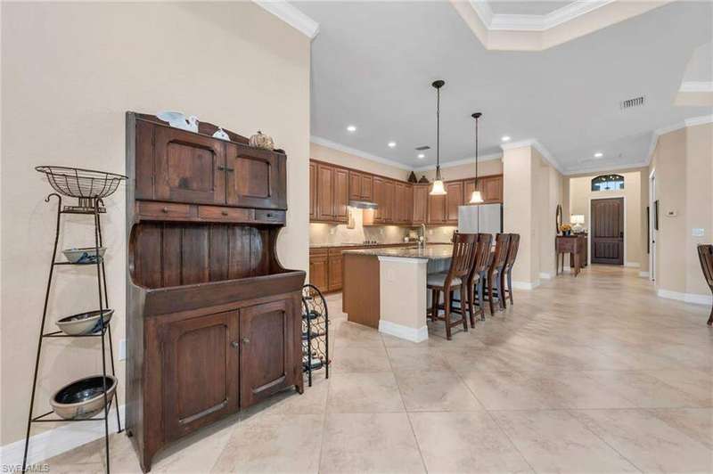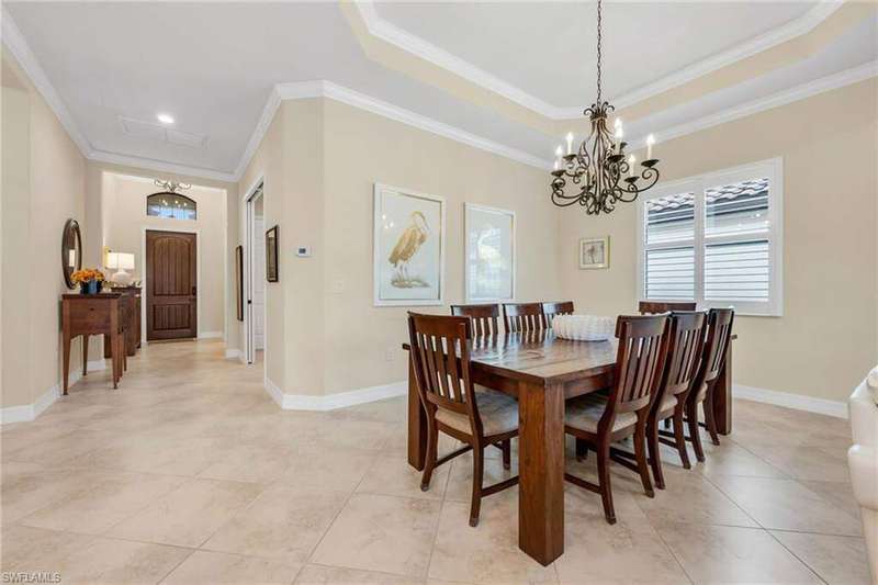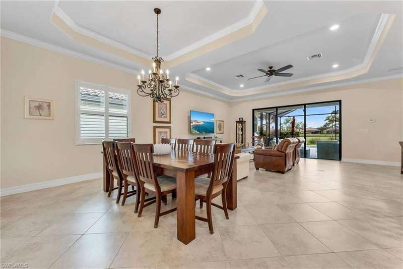 Perfectly positioned with southern exposure along the 5th hole of the Eagle Course, this residence includes a coveted SPORTS MEMBERSHIP; an exceptional value in one of Naples' most exclusive golf communities. This stunning single-family home in TwinEagles offers the perfect blend of luxury living and resort-style amenities. Featuring an open-concept floor plan with soaring ceilings, elegant finishes, and abundant natural light, the home is designed for both everyday comfort and effortless entertaining. The gourmet kitchen boasts stainless steel appliances, granite countertops, and a spacious island, seamlessly connecting to the great room and dining area. Retreat to the primary suite with spa-like bath, dual vanities, and generous walk-in closets. Additional bedrooms provide comfort and flexibility for family and guests. Plantation shutters throughout the home and high-impact glass on all windows and doors provide both elegance and peace of mind. Step outside to your expansive lanai with a sparkling pool and spa, outdoor kitchen, and serene views of the lake and golf course; perfect for enjoying Florida's indoor/outdoor lifestyle year-round. In the prestigious TwinEagles community, residents enjoy 1,115 acres of natural beauty, two championship golf courses (Nicklaus Group & Steve Smyers designs), a new clubhouse, bocce courts, Himalayan putting green, tennis, pickleball, a resort-style pool, tiki bar, and fitness center.