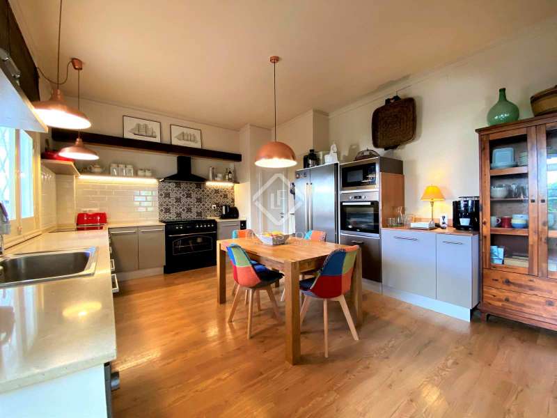This villa has a privileged location a few metres from the famous shopping avenue of Platja d'Aro and several of its beaches. You can reach all the restaurants, shops, bars and beaches of this town on foot in a short walk. The house offers 411 m² built on a flat plot of 447 m². Although it was built in 1959, it has been recently renovated, so it is presented in excellent condition. In addition, it benefits from an excellent southerly sapect, thus allowing you to enjoy the sun throughout the day. The house is distributed over 3 floors. The ground floor has a spacious and beautiful living room with access to the fantastic sunny terrace and garden, a fully equipped modern kitchen, a utility room and a guest toilet. It also has a loft with a separate entrance that houses a living room, a kitchen and a bedroom with a bathroom; all unified in the same space. On the first floor, we find a double bedroom with private bathroom, dressing room and private terrace, as well as 3 double bedrooms and a complete bathroom. These three bedrooms have access to a large terrace. The second floor consists of a double bedroom with a private bathroom, a living-dining room with an open kitchen and a fantastic and spacious terrace. The house has a private garage with capacity for two cars at street level. It is a villa that maintains the essence of the classic houses of the Costa Brava, but combined with a current contemporary style. A unique home in the area, thanks to its unbeatable location and its generous size.