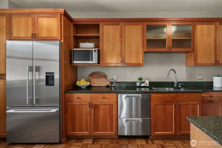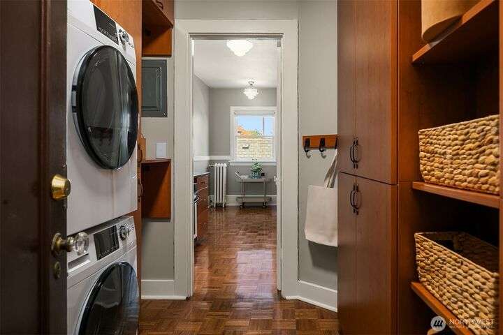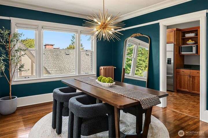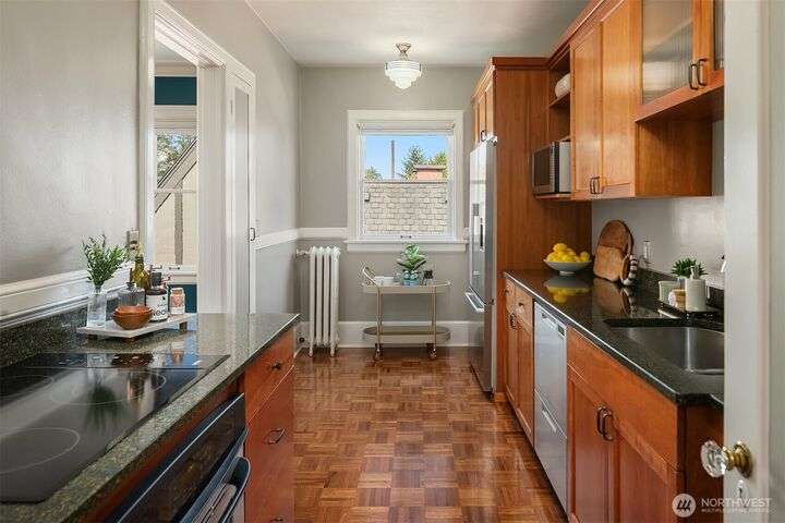 Vintage details, a spacious floor plan and the ideal location make this historic condo hard to beat. First time available in almost 25 years, it is situated along desirable Bigelow Ave N, the crown of Queen Anne hill. The top floor unit offers territorial views of the beautiful avenue and neighborhoods beyond QA. Updated kitchen with top of the line appliances, a remodeled bath w/radiant heat, marble floors and a spa-like atmosphere and a formal dining room with bonus wine/bar area or office set this condo apart. Large community deck w/expansive views of the Seattle skyline and mountains, including a BBQ, great for entertaining. Enjoy watching the seaplanes heading to Lake Union as well as NYE and July 4th fireworks, without leaving home.