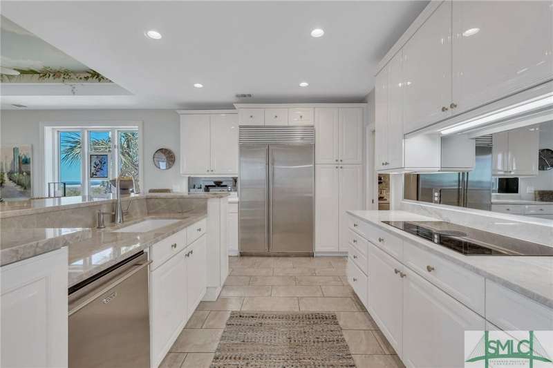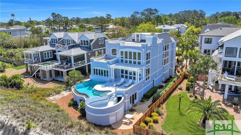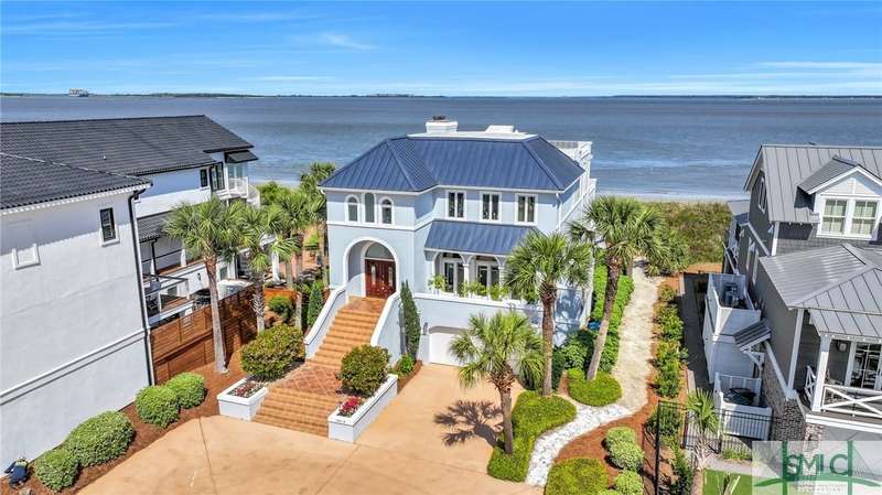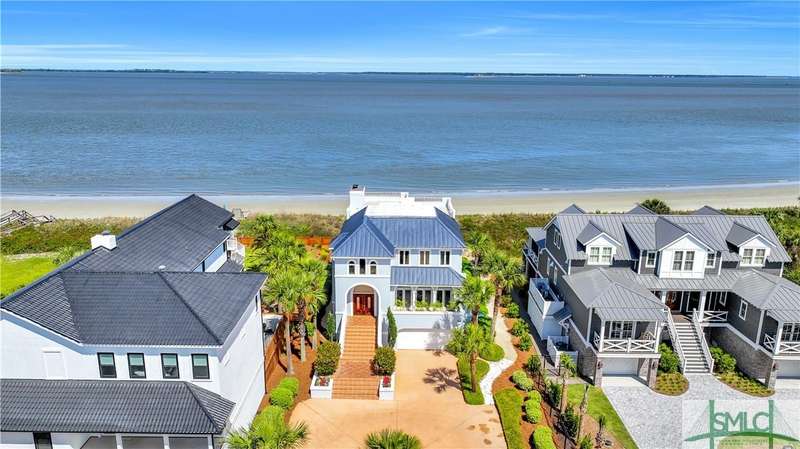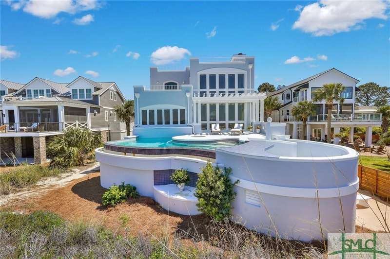 Imagine waking up to breathtaking views in this coastal paradise! This stunning oceanfront home offers amazing vistas & boasts extensive updates inside & out. With 4 bedrooms, 2 offices, a workout room, workshop, elevator & garage, this home caters to every need. As you enter through the foyer, you are greeted by the impressive winding staircase. Main level has an open layout with panoramic views & includes a gourmet kitchen, butler's pantry, living room, dining room, & garden room that leads to expansive deck. The deck offers extraordinary views of the infinity pool & shipping channel beyond. Lower level features bedroom, office, & half bath, with the highlight being the underwater themed bar that opens to the pool area. The third floor including the large primary bedroom that faces the ocean & includes a luxurious ensuite, 2 additional bedrooms with private baths & an office overlooking the main level.