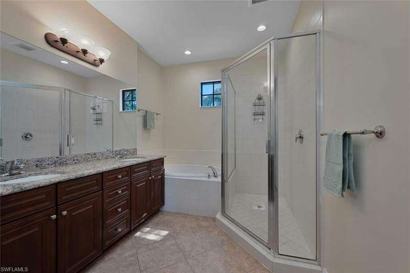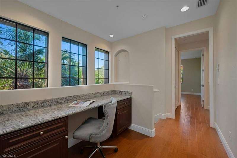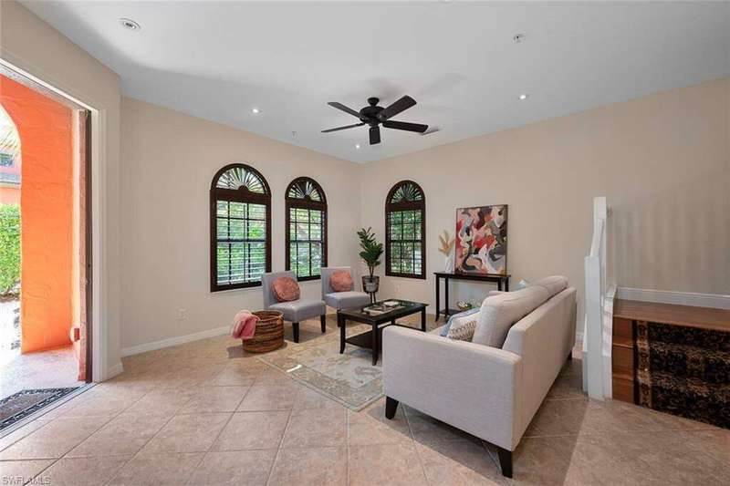 Indulge in the epitome of Mediterranean living within the vibrant Ole community of Lely Resort. This immaculate, two-story home presents a rare opportunity to own a slice of paradise. Experience and be captivated by the Santa Ana open concept floor plan, an entertainer's dream. The gourmet kitchen, a culinary masterpiece, boasts stainless steel appliances, a walk-in pantry, a breakfast bar, flowing seamlessly into the family-dining area. As a coveted end-unit nestled within the courtyard, this residence offers unparalleled tranquility and privacy. Luxury abounds with tile and engineered wood flooring, plantation shutters, an abundance of storage solutions thoughtfully placed throughout, 3 spacious bedrooms upstairs and a dedicated office area for those who desire a productive work-from-home environment. Beyond your doorstep lies the heart of the Ole community - a sprawling 20,000-square-foot village center. Immerse yourself in resort-style living with a sparkling pool, a dedicated children's pool, a soothing spa, a convivial pub, an ice cream counter for sweet treats, a gourmet bistro, a state-of-the-art fitness center, a private theater, and tennis and pickleball courts. Ole is a premier neighborhood strategically positioned near world-class shopping, delectable restaurants, the charming historic Downtown Olde Naples, Marco Island. Our pristine white-sand beaches are moments away, promising a lifestyle of sun-kissed elegance and coastal bliss. ALL CURRENT ASSESTMENTS PAID BY THE SELLER FOR SMOOTH TRANSITION!