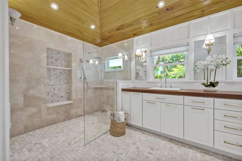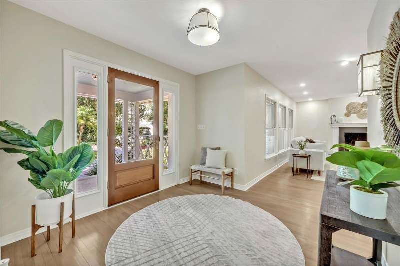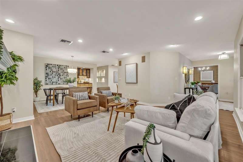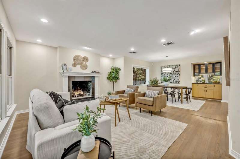 Under contract-accepting backup offers. Comfort, charm, and LOCATION are KEY for this unique, one-story, KEY West-style pool home with deeded access to Lake Virginia! Nestled on a brick-lined street in the highly sought-after Virginia Heights neighborhood, this location is truly one-of-a-kind, engulfed in the beloved culture and history of Winter Park, and within true walking distance of Rollins College, Park Avenue, and all the lively bustle of downtown Winter Park. Better yet, enjoy deeded lake access from the neighborhood lakefront park just a 3-minute walk from your front door, where neighbors gather for social events, holiday parties, and relaxing lake views. With a sprawling green lawn, dock, kayak/canoe storage racks, and picnic tables, the perfect daily retreat is just steps away. The home is move-in ready and bursting with charm, with over 2800 SF of thoughtfully designed space for everyday living and entertaining. The ideal, split-bedroom floorplan includes 3 bedrooms, 3 en-suite bathrooms, a private home office (or a 4th bedroom), cozy living room with a wood fireplace (piped for gas), dining room with a built-in lighted bar, large family room, and over 400 SF of covered lanai space overlooking the pool & backyard paradise. The oversized primary suite is truly special, with room for a sitting area, tons of built-in storage, and a mirrored barn door that opens to reveal a custom-designed spa bath, renovated down to studs in 2021. An absolute stunner, the primary bath features a large zero-entry marble shower, custom mahogany-topped vanity, maple board-and-batten walls, brass fixtures, and cypress vaulted ceilings, plus 2 walk-in closets and a third storage closet at the bedroom entrance. The sunny family room extends to the rear of the home, where French doors are equipped with retractable screen doors for enjoying the breeze indoors and out, in true Key-West style. Past the French doors, a travertine lanai stretches across the back of the home and overlooks a lagoon-style pool and travertine deck, with surrounding palms and lush tropical landscaping to create the perfect backyard oasis. The kitchen features Thermador appliances, with a gas cooktop and a brand new vent hood framed by a new marble backsplash, and new pendant lighting over the breakfast bar. Both secondary bedrooms have French doors that open to the covered lanai, and en-suite bathrooms. Other conveniences include a whole-house sound system with interior and exterior speakers, custom laundry room (renovated in 2021), and 2-car garage with built-in storage. Move-in ready, the home was completely replumbed in July 2025, with a new gas water heater, partial roof replacement (all new flat roof in Aug 2025), up-to-date electrical, and (2) recently serviced 2019 HVAC units with UV lights. Ask for list of improvements and a floorplan!