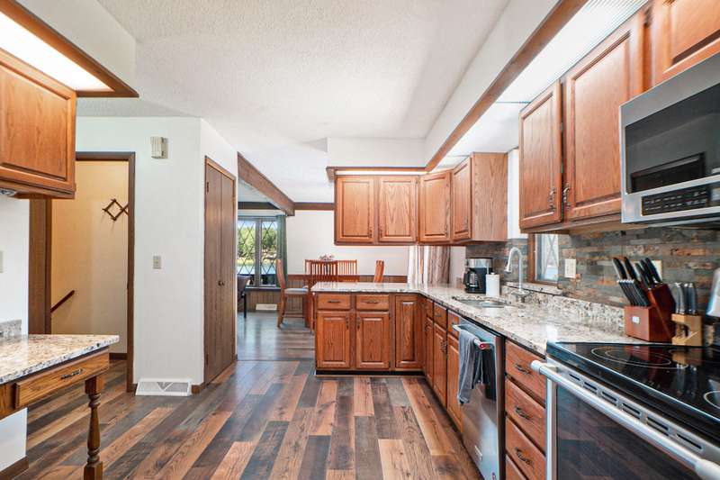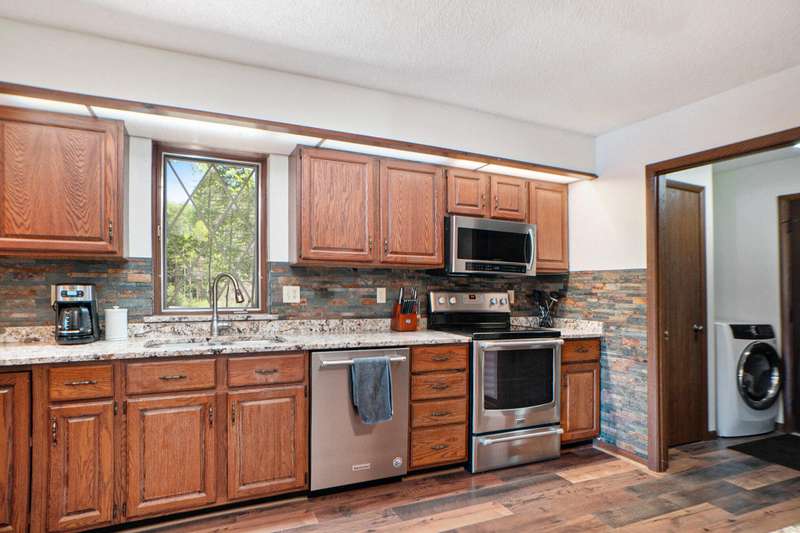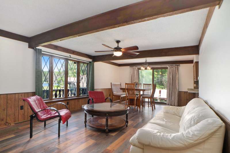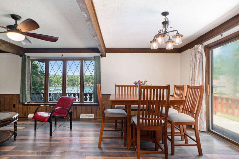Back on the market! This beautifully maintained 3 bedroom, 2 bathroom home on Lot 33 offers 58 feet of pristine beachfront along the tranquil shores of Perch Lake. The open layout seamlessly connects the living, dining, and kitchen areas, creating an inviting space for entertaining or relaxing with loved ones. A charming wood stove adds warmth to the living room. Enjoy waking up to stunning lake views, sipping morning coffee on the deck, or indulging in leisurely brunches overlooking the sparkling waters. Fishing enthusiasts will delight in the abundance of Perch, Bluegill, Bass, Pike, and Sunfish just steps away. Discover tranquil retreats or lakeside adventures at this relaxing Perch Lake property.