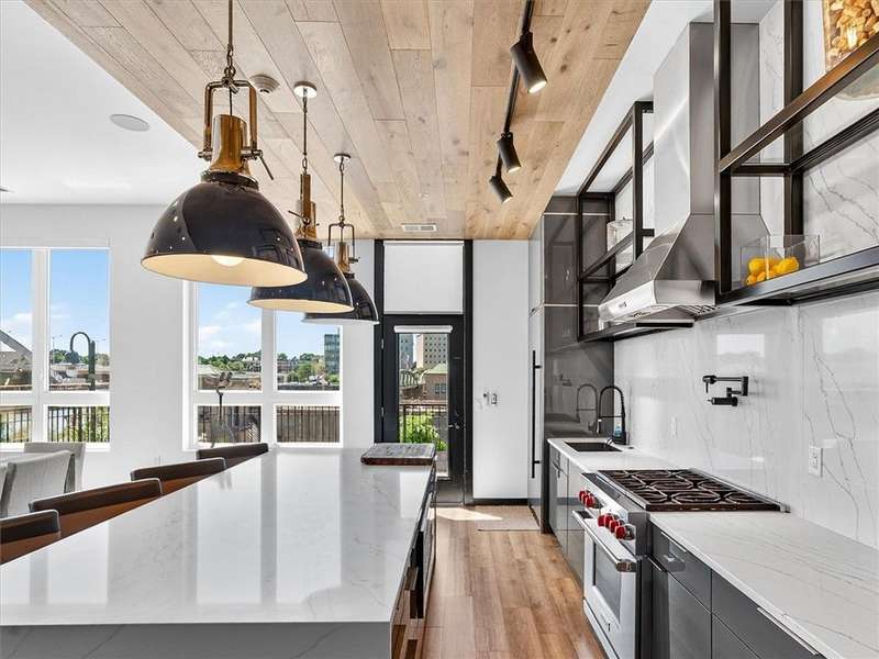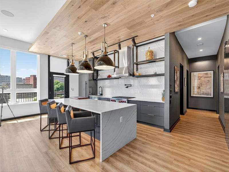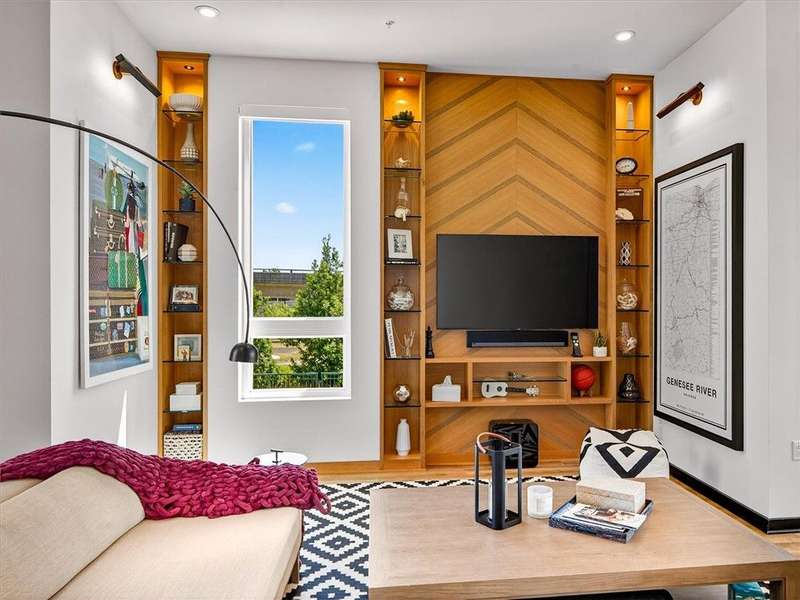 "The Nathaniel" offers a luxurious 2 bedroom/2 full bathrooms apt, Stunning appointments make for a 1st floor penthouse! Exciting views of the Promenade at Erie Harbor, Genesee River & Frederick Douglass Susan B Anthony Bridge, easy accessibility to the Genesee Riverway Trail, fully updated open concept kitchen with stainless-steel oven/range, dedicated pantry, built-in refrigerator and stainless-steel microwave & solid surface countertops with full island, spacious office & in-unit laundry! Luxury vinyl flooring throughout, full dry bar, primary bedroom and primary bathroom combo with walk-in closet, expansive patio with awning & automated lighting and blinds system. Fantastic central locations close to all amenities and local hot spots! Less than 1 minute to I-490 and Dinosaur BBQ, 6 minutes to the University of Rochester, Cobbs Hill and Highland Park, and Blue Cross Arena, 10 minutes to the Public Market & Strong Memorial Hospital! The Nathaniel offers a fitness center, pet salon, bike storage, dedicated mail room and clubhouse for you to enjoy! This apartment comes fully furnished AND all utilities are included in the monthly rent, pets will be considered on a case-by-case basis and no smoking is allowed. Monthly cleaning service is included, minimal 6 month lease.