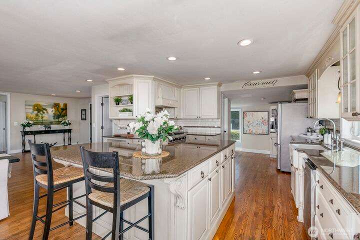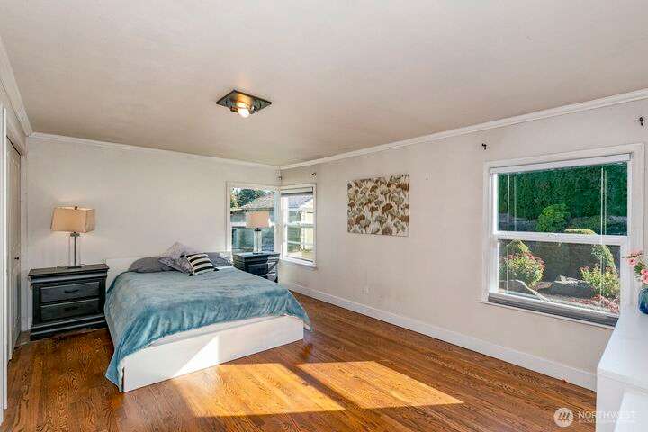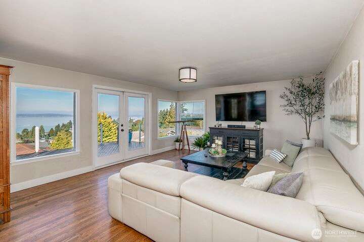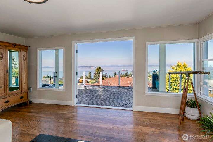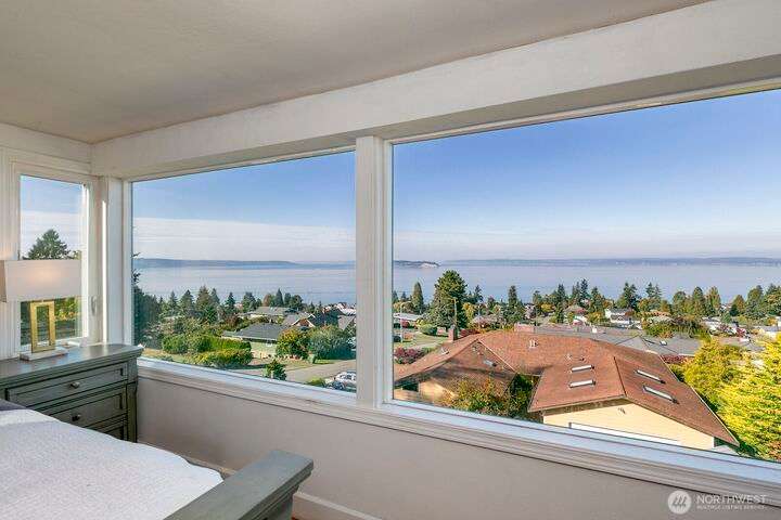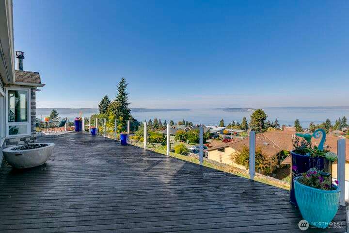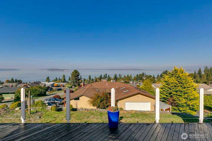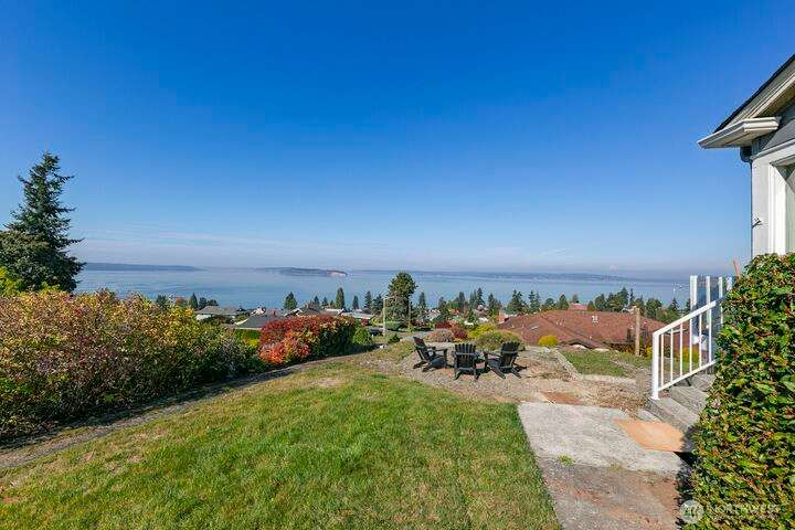 STUNNING unobstructed VIEW, Cascades to Olympics and everything in between. Watch the ferry to Whidbey & the battleships come home to port. Admire Mt Baker in all its majesty, especially during PNW sunrises & sunsets. Oversized & level lot means there is room to subdivide lot or build up to 2 ADUs w/the best views in town. Main floor features large open living space, hardwood floors throughout & kitchen complete w/6 burner gas range, tons of cabinets & walkin pantry. Open French doors to the deck for indoor/outdoor entertaining. Main floor bedrm & bath plus a 1/2 bath for guests. Use the upstairs as a bedrm, office or just a place to sit and reflect on the beauty outside. 2 huge basement bedrms, full bath & utility room complete the house.