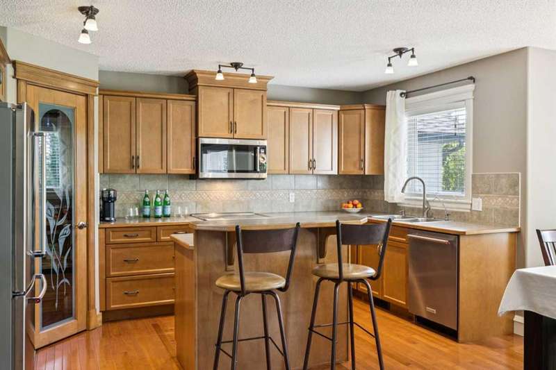 Welcome to the Perfect Family Home – Style, Space & Comfort for Everyone! This beautifully maintained and thoughtfully designed home is sure to impress every member of the family. From the moment you step inside, the open-concept layout welcomes you with warmth and space, ideal for both daily living and entertaining. At the front of the home, a spacious sun-filled office provides the perfect place to work or study, featuring large windows that let in plenty of natural light. Gorgeous hardwood flooring flows throughout the main level, enhancing the sense of elegance and continuity. The heart of the home – the chef’s kitchen – will delight with its abundance of cabinetry and counter space, along with upscale newer appliances, including a premium induction oven. Whether you're preparing a family dinner or hosting friends, this kitchen is built to perform. The cozy yet sophisticated living room offers a stunning fireplace flanked by custom built-in shelving – perfect for displaying your cherished memories and treasures. Upstairs, retreat to the expansive primary suite, complete with three oversized windows, a generous walk-in closet, and a luxurious 4-piece ensuite. Two additional well-sized bedrooms offer comfort and flexibility for family, guests, or hobbies. The fully finished basement adds even more value, featuring a large recreation space, fourth bedroom, full 4-piece bathroom, and versatile areas for a games room, home gym, or movie nights. And yes, all permits are in place. Step outside to your west-facing backyard oasis, where a spacious deck and huge yard provide endless possibilities – from relaxing evenings to hosting summer gatherings. And for the garage enthusiast, this one is unmatched – a tandem triple garage, fully finished and heated, complete with polysparitic flooring, 220V power, built-in cabinetry, air compressor, and fridge. You’ll be the envy of the neighborhood! Additional highlights include: Central air conditioning, Integrated home audio system, Reverse osmosis water system in the kitchen, Newer roof, Newer Sump pump, Upgraded washer & dryer, freshly painted with modern colors. Don’t miss the chance to make this incredible home yours – schedule your showing today and experience the perfect blend of style, function, and comfort!