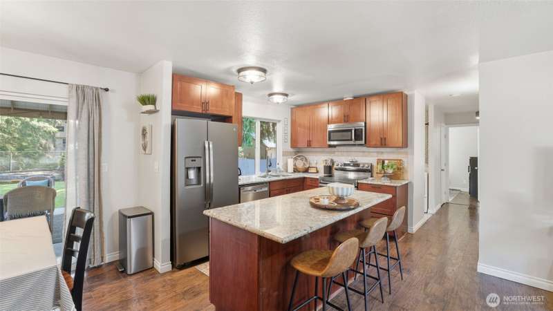 The home you have been waiting for has finally hit the market! Enter property through the quaint white picket fence and head inside to see all this open floorplan has to offer. Slab granite kitchen with breakfast bar and stainless appliance package. Living room + spacious family room. Updated bathroom with new vanity has full tile shower surround. You can exit through the sliding glass doors from the dining nook or family room to access the large fully-fenced back yard with recently installed entertainment sized patio that has covered + uncovered space for year-round enjoyment. This surprisingly secluded yard space is complete with firepit & shed is buffered with green space on 2 sides. In-home laundry. All appliances are included.