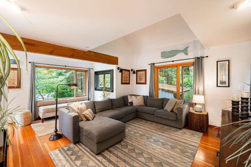 Imagine waking up gazing out across your garden to a beautiful coastal ocean view or strolling your ½ acre park-like property admiring the mature garden that’s in bloom. From the backyard forest to the large front lawn, there is ample place to play, garden & relax. Inside, the 100-year old reclaimed Douglas Fir flooring & exposed beams provide that warm, west coast feel. The living room features vaulted ceilings & a fireplace. Up is the primary suite with a large bedroom and recently renovated ensuite. There’s also a den/office that could work as a baby’s room. With 2 bedrooms on the lower level, & separate entry there’s potential for a guest suite. Just a short walk to popular Bowen Bay beach, this property will tick a lot of boxes for those yearning for a quiet, nature-filled lifestyle.