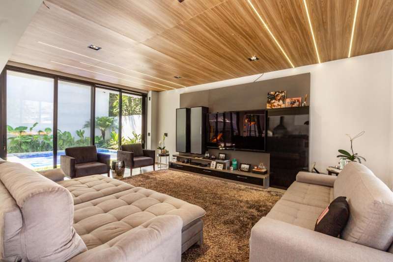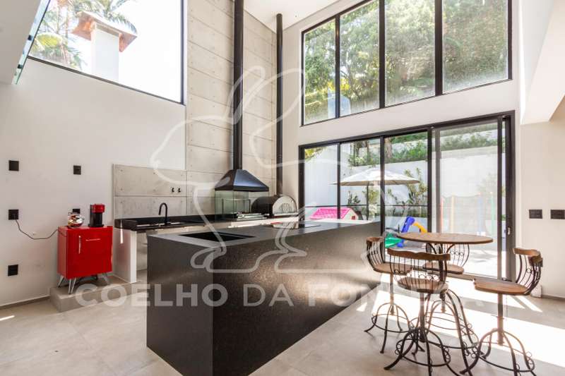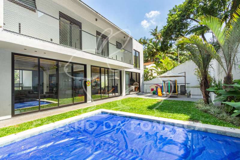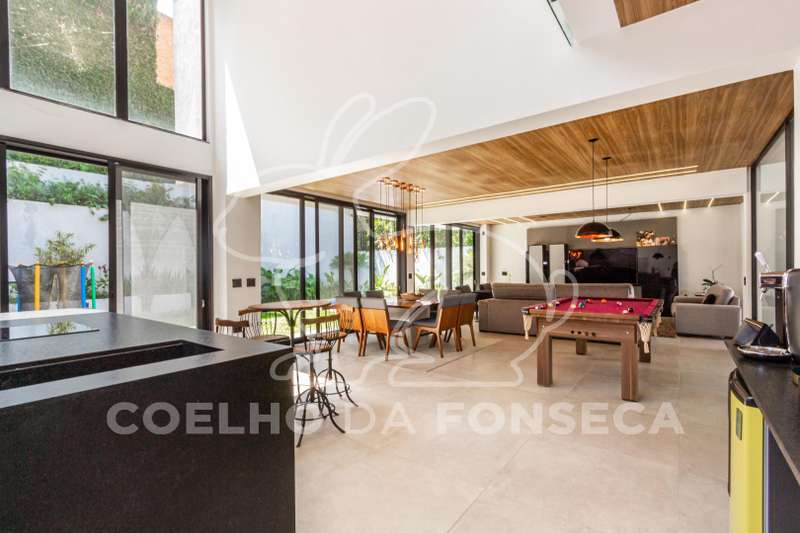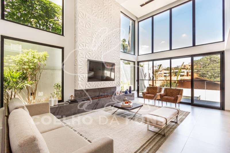 Casa em Condomínio no bairro Panamby com 511m² área construída, 4 dormitório(s), 4 suíte(s), 3 vaga(s), 5 banheiro(s), piscina, escritório, dep. de empregados, reformado (a), varanda, pé direito duplo.