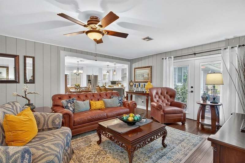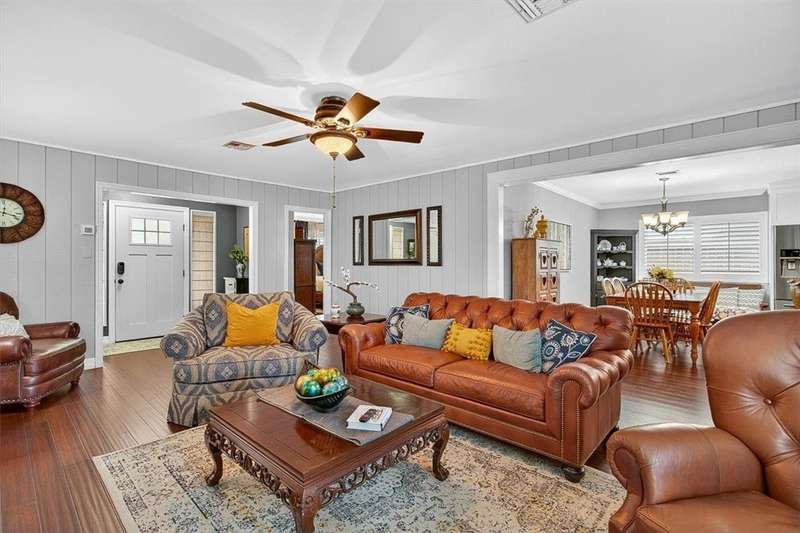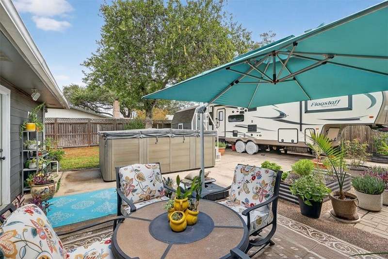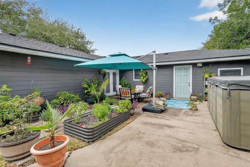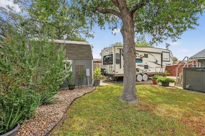 Pride of ownership shines throughout this beautifully maintained and thoughtfully updated 3-bedroom, 2-bath home in the desirable South Side of Corpus Christi. The welcoming covered entry and manicured landscaping set the tone for the bright and inviting living spaces inside. The custom kitchen boasts granite countertops, farmhouse sink, stainless steel appliances, island seating, and a walk-in pantry with barn door, coffee bar, and abundant storage. The garage conversion creates a spacious game or flex room with cabinetry and enclosed laundry. The private primary suite features a tiled walk-in shower, seated vanity, and expansive walk-in closet, while the secondary bedrooms share a stylish bath with granite counters. French doors lead to a backyard retreat complete with large patio, powered Tuff Shed, 50-amp RV hookup, double-gated entry, and mature landscaping. Additional highlights include upgraded flooring, premium windows with plantation shutters, and mature trees. Convenient to SPID, Cross Town Expressway, shopping, and dining. This property is sure to sell fast-come see all it has to offer and make it yours!
