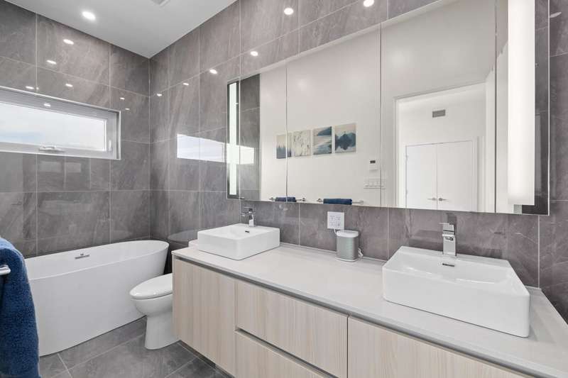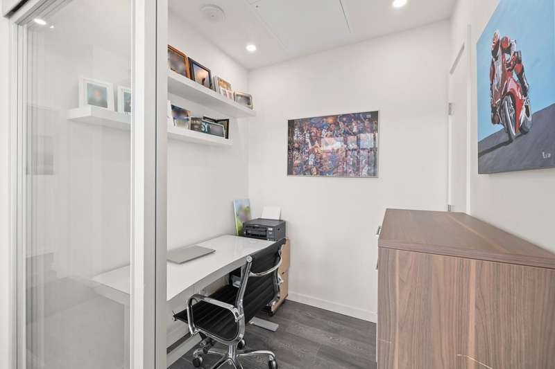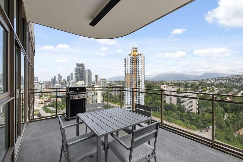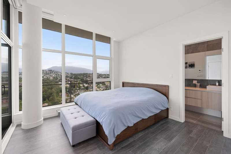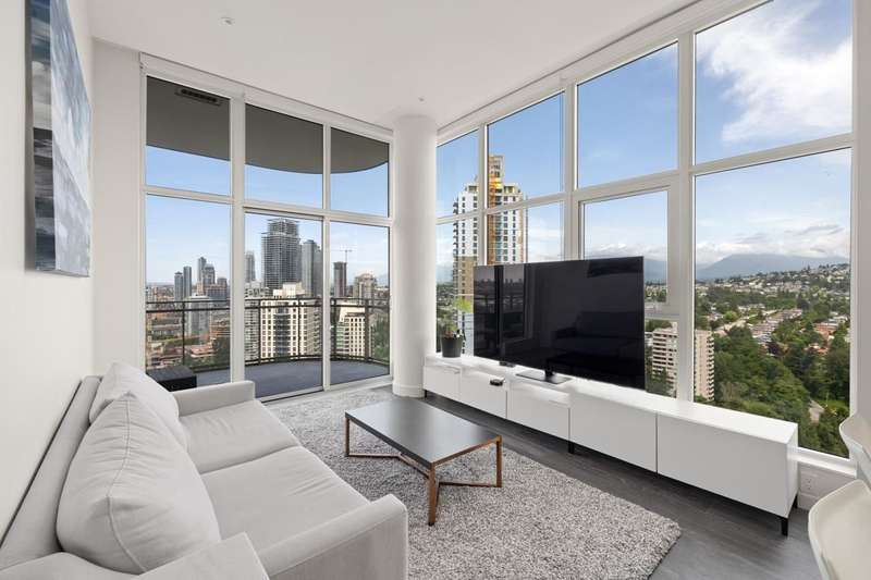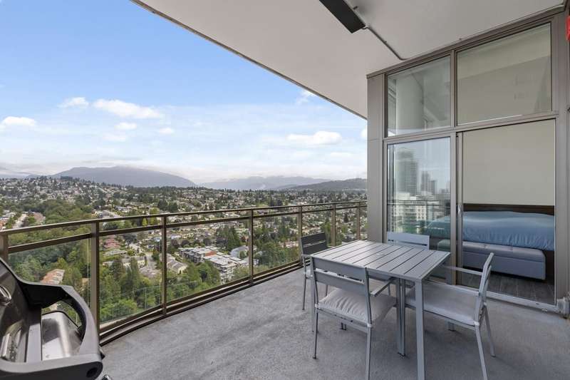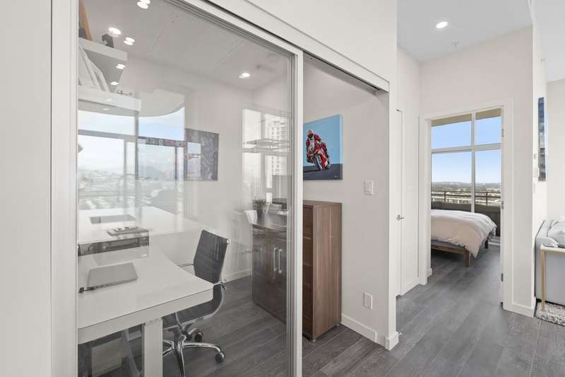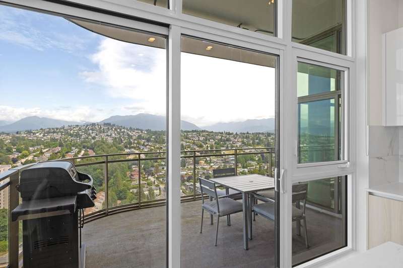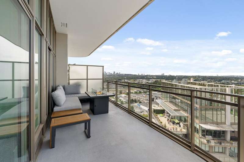 Stunning 2 Bed + Den, 2 Bath Sub-Penthouse in the heart of Brentwood! Bright corner unit with 10'5' ceilings, floor-to-ceiling windows, and panoramic NW city & mountain views. Chef's kitchen with gas stove & high-end appliances. Luxurious primary bathroom with soaker tub & glass shower. Comfort year-round with heat pump heating & A/C. 2 balconies totally 375 square feet, access from primary bedroom, kitchen and the living room. Includes 2 EV parking stalls & storage locker. Resort-style amenities: outdoor pool, hot tub, full gym. Steps to transit, Amazing Brentwood, and quick access to Hwy 1. Urban living at its finest! Open House Sun 2-4!