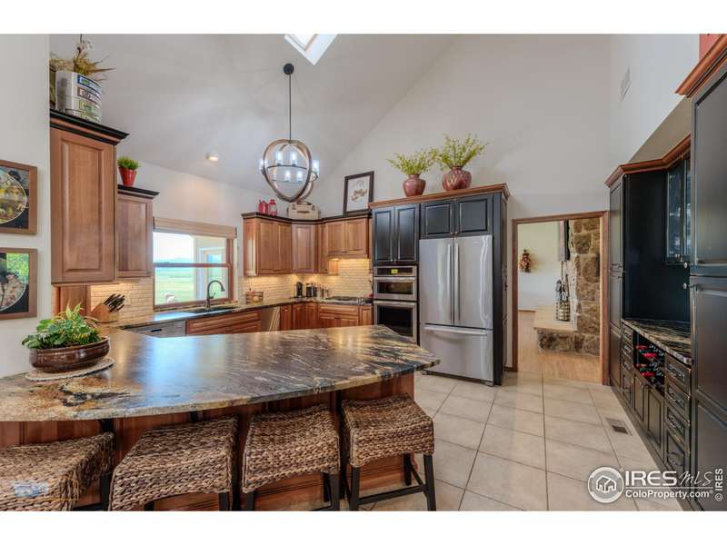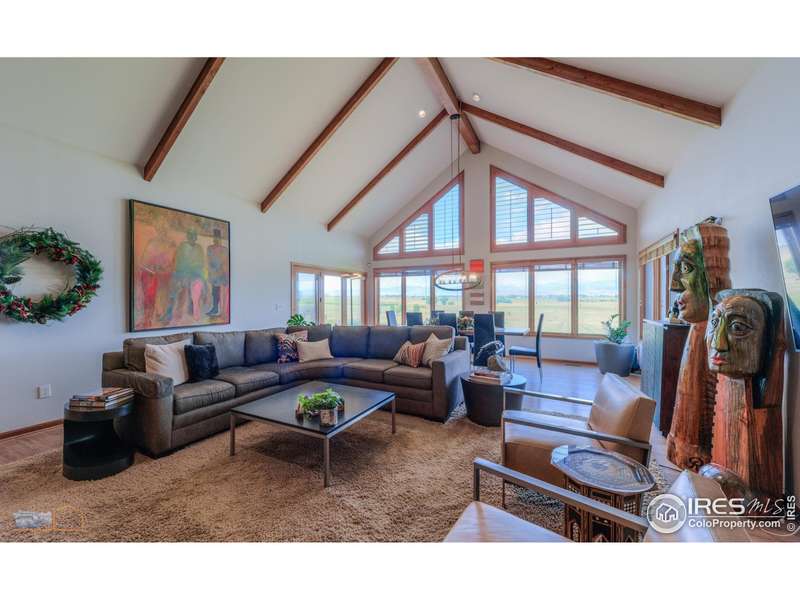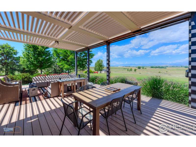 Commanding 80 acres of prime Boulder County land, this extraordinary estate offers sweeping, unobstructed views of the Front Range and Rocky Mountains from every corner of the property. At the heart of it all is a fully remodeled custom home, thoughtfully reimagined inside and out between 2015 and 2018 to elevate both comfort and style. Nearly 300 side-dump truckloads of soil were expertly moved from the lake in 2015 to shape the dramatic landscape berms that now frame the home-creating a sense of privacy while enhancing the stunning visual backdrop. That same year, a sprawling covered deck was constructed to extend the living space outdoors. Designed for year-round enjoyment, it features a motorized awning for effortless transitions between sun, shade-making it the perfect setting to relax or entertain against a Rocky Mountain backdrop. Inside, the gourmet kitchen was completely renovated with custom cherry cabinetry and rich leathered granite countertops, blending elegance with functionality. The primary bathroom was also fully reimagined, and the home's interior was transformed with reconfigured walls, new flooring throughout, designer lighting, and custom window treatments. The lower level is a versatile space ideal for multi-generational living or extended guest stays. It includes a full kitchen, a walk-in pantry, walk-in closet, new washer and dryer, a spacious open floor plan, and a luxurious bathroom featuring a Jacuzzi tub. Designed with both comfort and utility in mind, the property includes a fully climate-controlled, eight-run dog kennel with private outdoor access-ideal for breeders, trainers, boarding professionals, or your own favorite furry best friend. Water rights include 18 shares of New Ish, plus two domestic water taps. Farm equipment is included and features a Kabota tractor, a Honda Pioneer 700 UTV, and a riding lawnmower-ensuring you're well-equipped to care for the land.