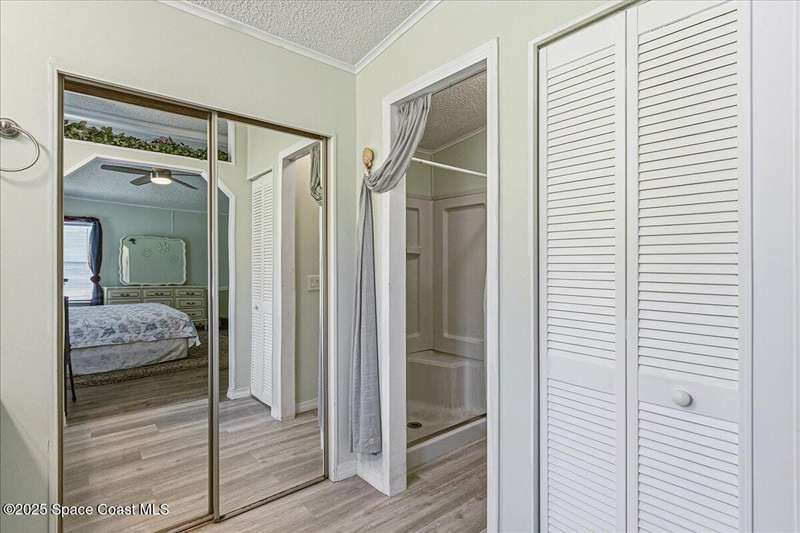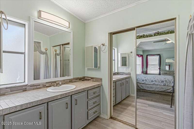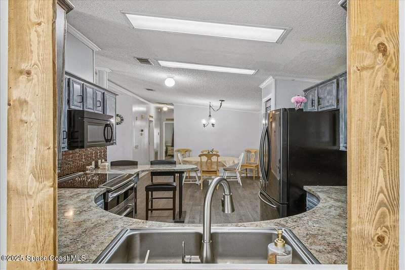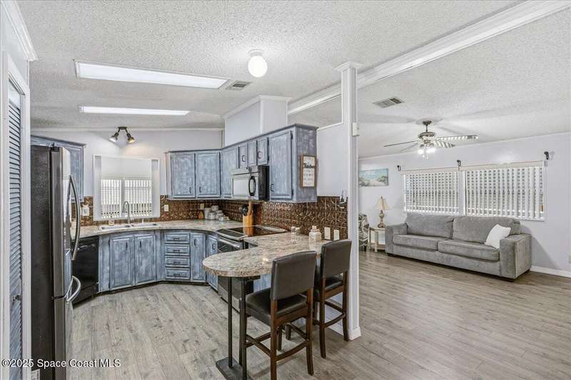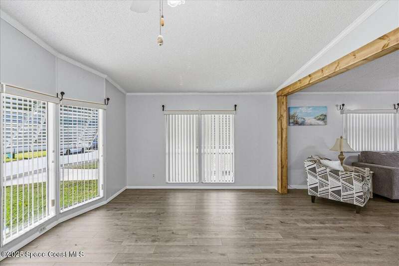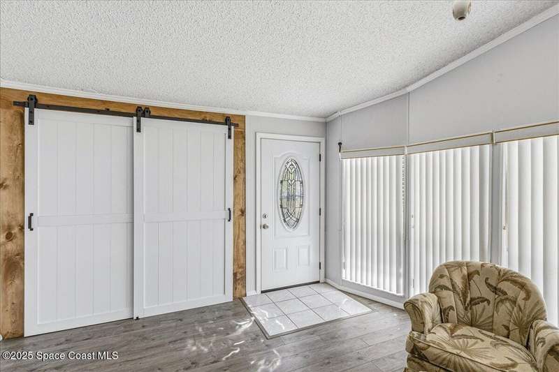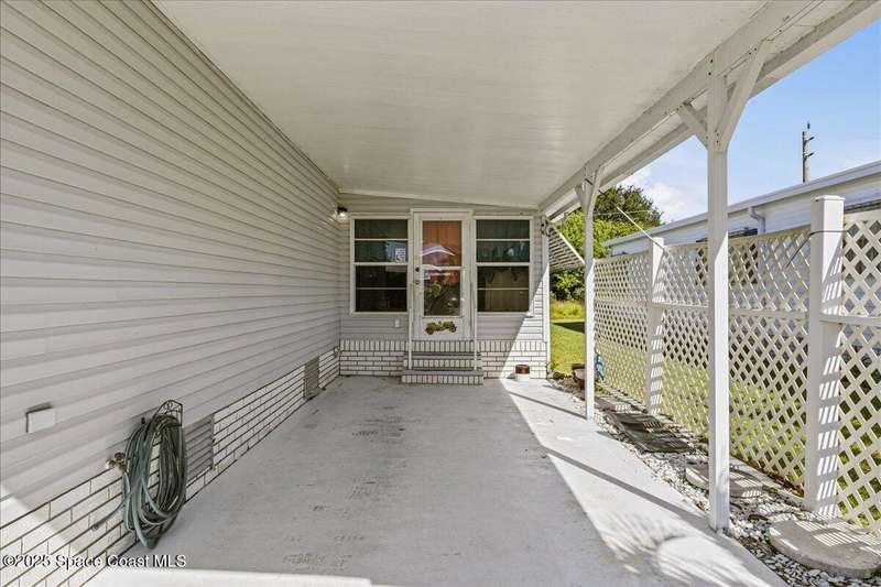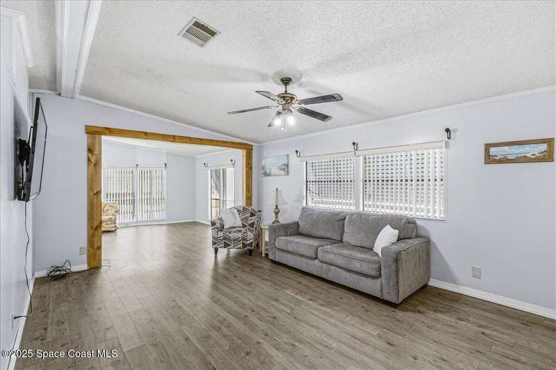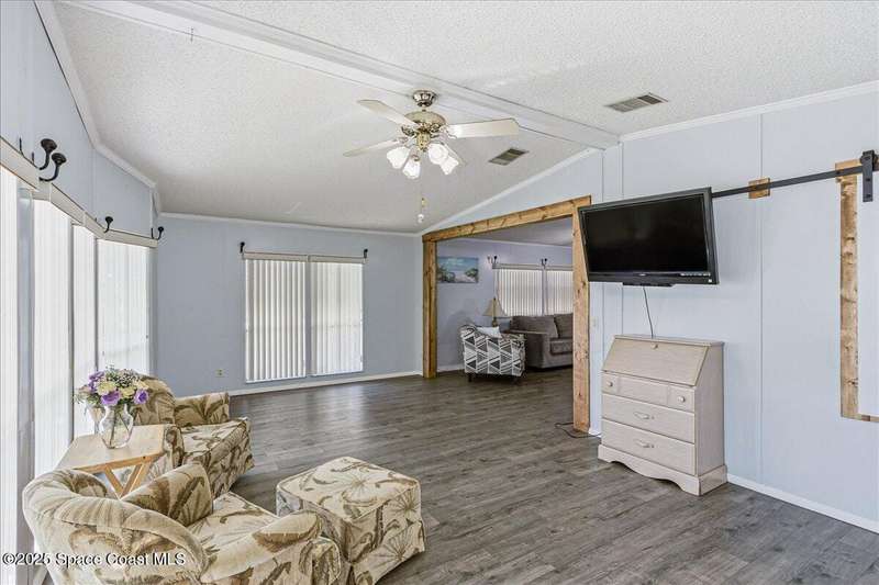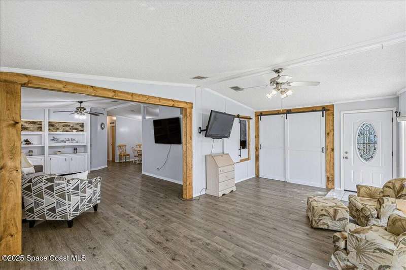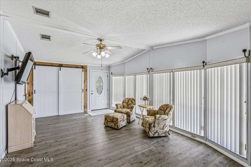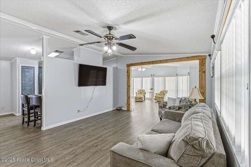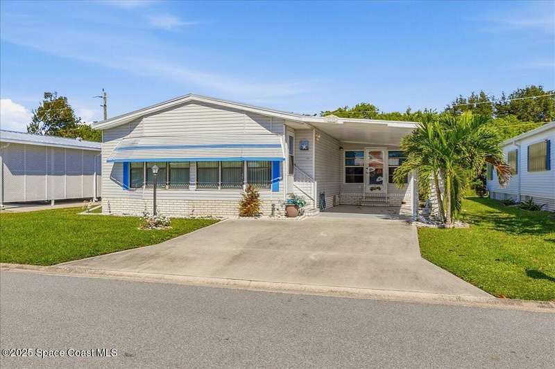 Welcome to your new home in Barefoot Bay on the highly desirable Tequesta Drive. Featuring a new AC (2024), this property offers both comfort and peace of mind. Step inside to find modern vinyl flooring throughout and a spacious kitchen that opens to the oversized living room into the dining. The primary suite is a true retreat, complete with a walk-in closet and walk-in shower. Additional highlights include a large family room that can easily be converted into a 3rd bedroom, ceiling fans and abundant storage space. Residents of Barefoot Bay enjoy exceptional amenities such as golf, multiple pools, tennis courts, a private pier and so much more! *Room sized approximate and subject to error.
