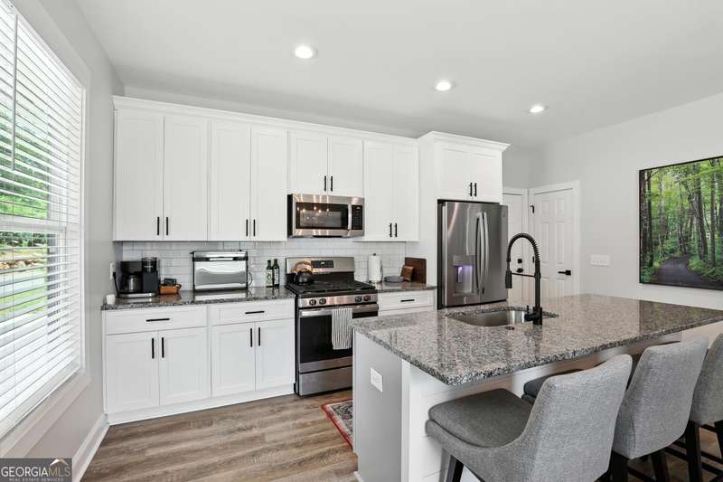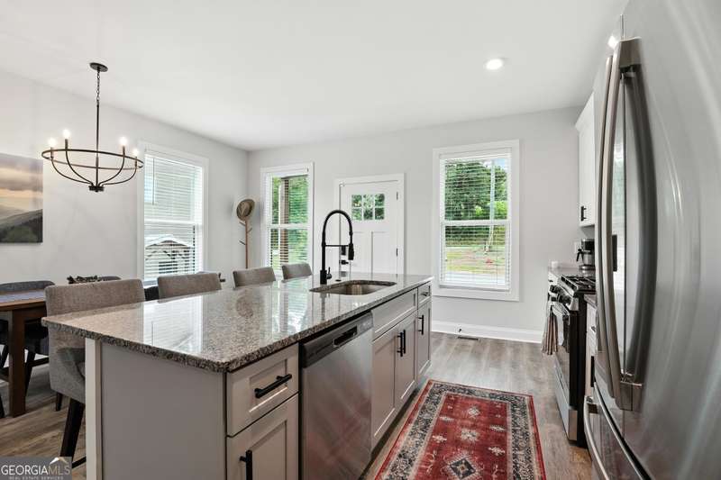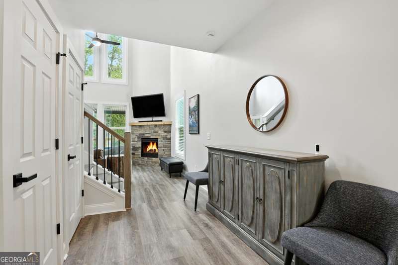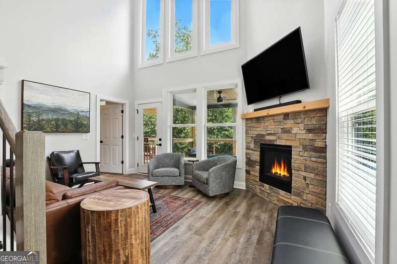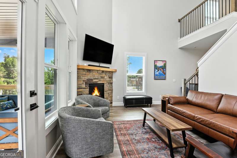 Enjoy the sounds of the Stekoa Creek in this fully furnished and almost brand new townhome in the heart of Clayton! Conveniently located to all the shopping boutiques and fine dining areas in this desirable mountain town of northeast Georgia. This spacious home offers the primary bedroom suite on the main level with walk in closet. Primary bath has large tile shower, double vanities, and granite counter tops. Kitchen has all SS appliances, gas stove, granite countertops w/ tile backsplash, complete with large island and formal dining area to entertain all your guests comfortably. Need space outside?? This home has it! Screened in porch overlooking the creek as well as open deck space! Multiple areas to relax and enjoy the rushing sounds of the majestic Stekoa Creek below. Upstairs boasts 3 well appointed bedrooms, full bath, and cozy reading/relaxing area! Full finished terrace level w/ kitchen area, bath, and large living space. Plenty of area to install a murphy bed and make this an excellent studio space to rent! Separate entrance with its own garage and patio area! Crossing the bridge over the Stekoa, you will find a hiking trail for morning jogs or evening strolls. Dog park also next to unit for your furry friends to enjoy! Excellent area for living off the beaten path but close to all the high-end conveniences this lovely area has to offer. High speed internet is available and established at home! Come live in the beautiful northeast Georgia Mountains TODAY!!