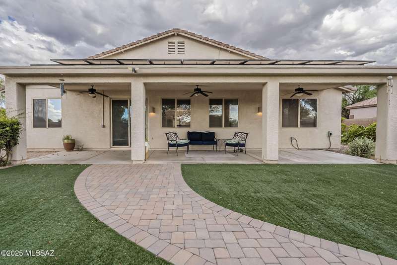 Welcome to this stunning home in the gated community of Rancho Cancion, nestled on an oversized corner lot in a quiet cul-de-sac for ultimate privacy. The beautifully designed backyard is perfect for entertaining, featuring an extended covered patio, Pebble Tec pool, artificial turf, pavers, fire pit, and solar for energy efficiency. Inside, enjoy Italian porcelain floors, granite countertops, and a chef's kitchen with a gas range. The split-bedroom plan offers 4 spacious bedrooms and 2 bathrooms, including a primary suite with a large walk-in shower. Fresh interior paint, tall ceilings, and expansive windows create a bright, open feel throughout. Complete with a 2.5-car garage, this home blends style, comfort, and functionality. A true gem in Rancho Cancion!