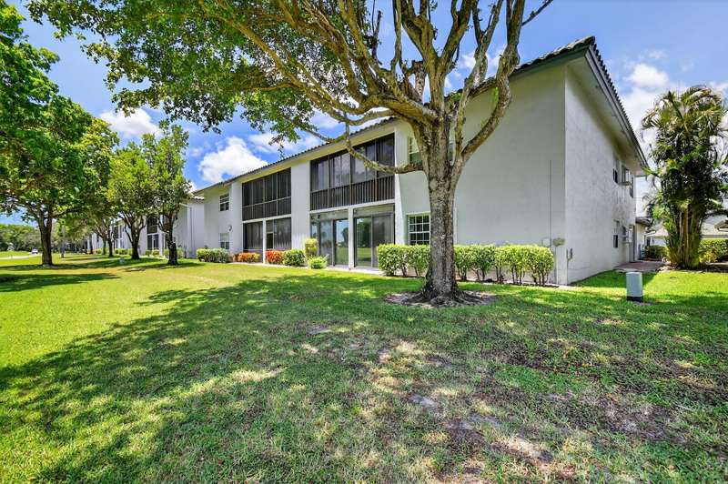 STEP INTO THIS 2/2/1-CG 1ST FLOOR CONDO &, YOU'LL LOVE THE TREMENDOUS SIZE OF THE GREAT ROOM THAT LOOKS OUT TO A PANORAMIC VIEW OF LUSH GREENERY & TREES. AN EXTRA WIDE ENCLOSED PATIO W/ A/C FOR YEAR-ROUND USE W/ MOTORIZED SHUTTERS & IMPACT SLIDERS BRING AN ABUNDANCE OF NATURAL SUNSHINE TO THE OPEN FLOOR PLAN. THE UPDATED EAT-IN KITCHEN IS ADORNED W/ NEW HIGH-END APPLIANCES, GRANITE COUNTERTOPS & TILE BACK SPLASH. 2ND OUTDOOR PRIVATE PATIO OFF KITCHEN. ADDITIONAL DESIGN FEATURES INCLUDE TILE ON THE DIAGONAL IN LIVING AREAS, TRAY CEILING IN DINING AREA & FAUX WOOD FLOORING IN BEDROOMS. LARGE PRIMARY SUITE BOASTS PLANTATION SHUTTERS, ORGANIZED CLOSETS, PULL-OUT SHOE RACK & ROMAN TUB. ADDITIIONAL UPGRADES INCLUDE NEW WASHER & DRYER & ACCORDION SHUTTERS. SEE FOR YOURSELF