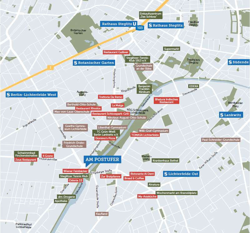 On the site of the listed former post office building at Hindenburgdamm 1 in Berlin-Lichterfelde, a unique ensemble is being built in a direct riverside location and with a large underground parking garage. There will be a total of four buildings with 48 condominiums and 10 commercial units. The centerpiece is the beautiful, richly landscaped courtyard. Protected from the outside world, one can wonderfully relax here, let one's gaze wander and enjoy nature. The commercial spaces are spread over three buildings. In the listed building of the lavishly renovated old post office, there will be residential-compatible commercial space in addition to floor and attic apartments. The new building on Königsberger Strasse will offer offices as well as space for two stores. The new building on Hindenburgdamm will have office and medical practice space in addition to two apartments. The new building on the banks of the Teltow Canal will be exclusively residential. On the site of the listed former post office building at Hindenburgdamm 1 in Berlin-Lichterfelde, a unique ensemble is being built in a direct riverside location and with a large underground car park. There will be a total of four buildings with 48 condominiums and 10 commercial units. The centrepiece is the beautiful, richly landscaped inner courtyard. Protected from the outside world, this is a wonderful place to relax, let your eyes wander and enjoy nature. The commercial spaces are spread over three buildings. In the listed building of the lavishly renovated old post office, there will be flats and attic flats as well as commercial space suitable for residential use. The new building on Königsberger Straße will offer offices as well as space for two stores. The new building on Hindenburgdamm will have office and practice space in addition to two flats. The new building on the banks of the Teltow Canal will be exclusively residential.