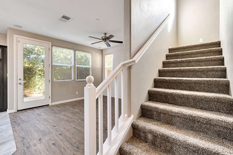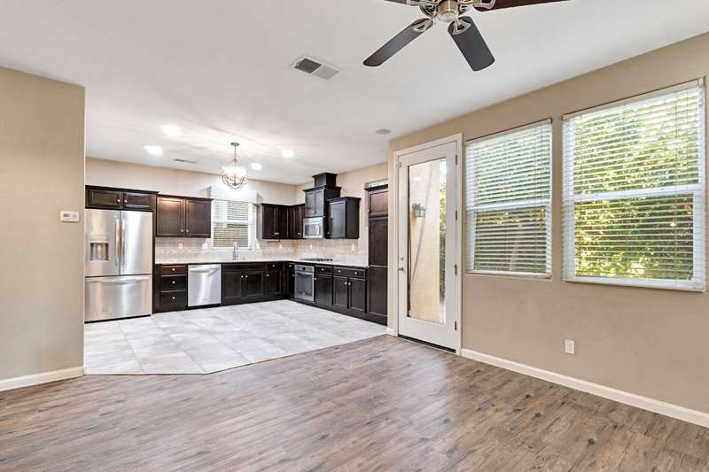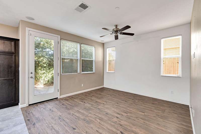 Turnkey Opportunity in Harlan Ranch - Great for Investors or First-Time Home Buyers! Immaculate home in highly sought-after Harlan Ranch with no rear neighbors! This move-in ready home features brand new luxury vinyl plank flooring downstairs and brand new carpet upstairs. The kitchen offers granite counters, stainless steel appliances, abundant cabinet space, and a convenient half bath with pedestal sink. The open family room is filled with natural light, complete with large windows, a ceiling fan, and glass door leading to the backyard.Upstairs, the spacious primary suite includes a walk-in closet and oversized walk-in shower. Two additional bedrooms - one with a walk-in closet - plus a full bath with tub/shower complete the second level. All bedrooms have ceiling fans.The backyard is low-maintenance yet charming, featuring a cement patio, mature landscaping and tree coverage for privacy. With two 1-car garages and motivated sellers, this home checks all of the boxes. Contact your favorite agent and go see it today!
