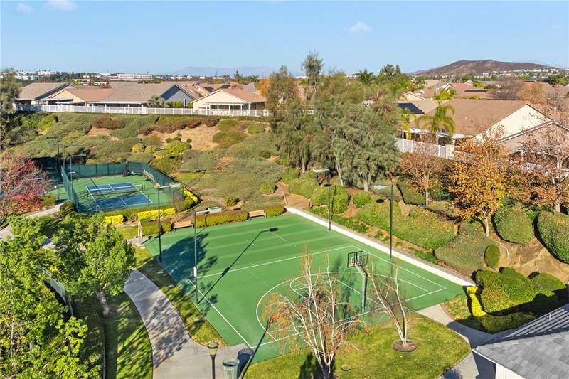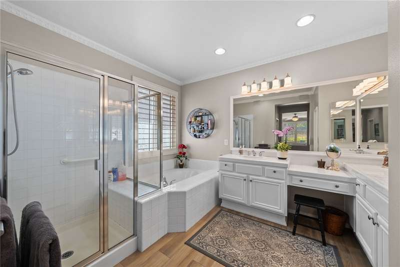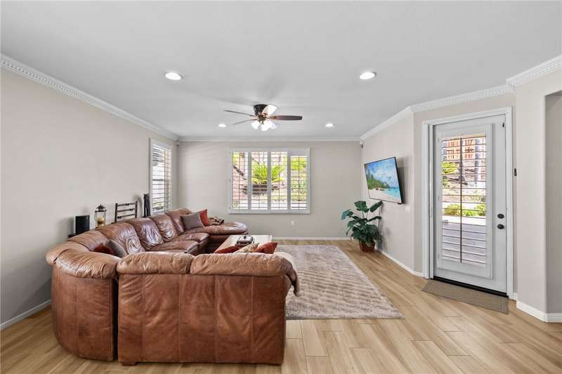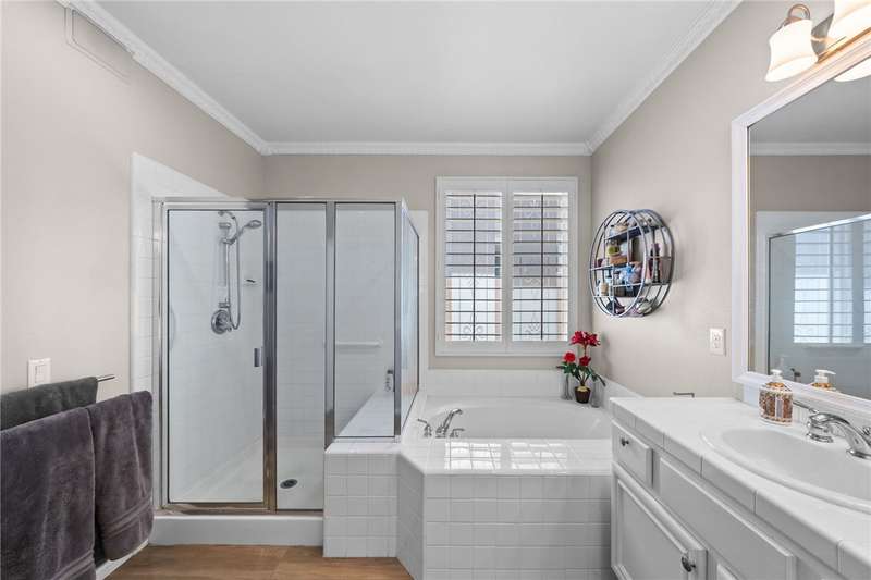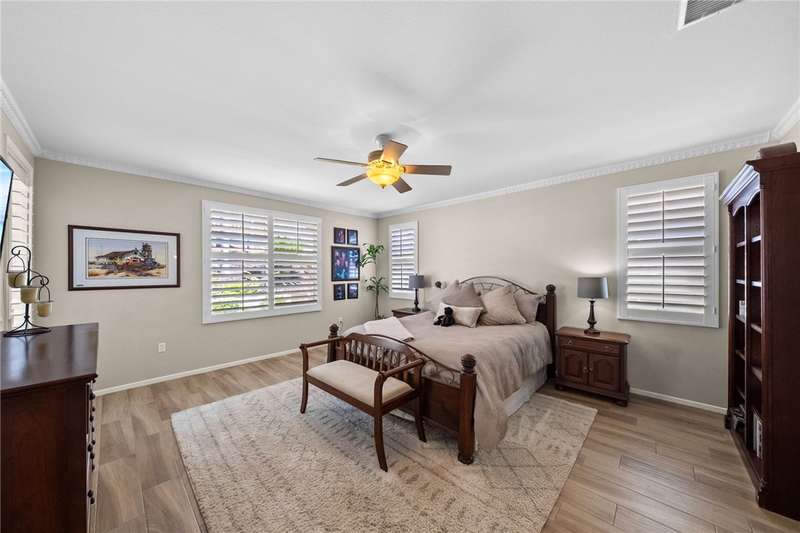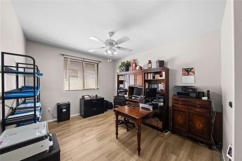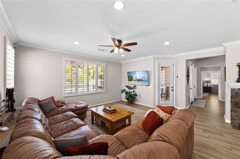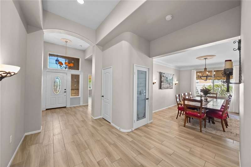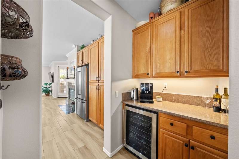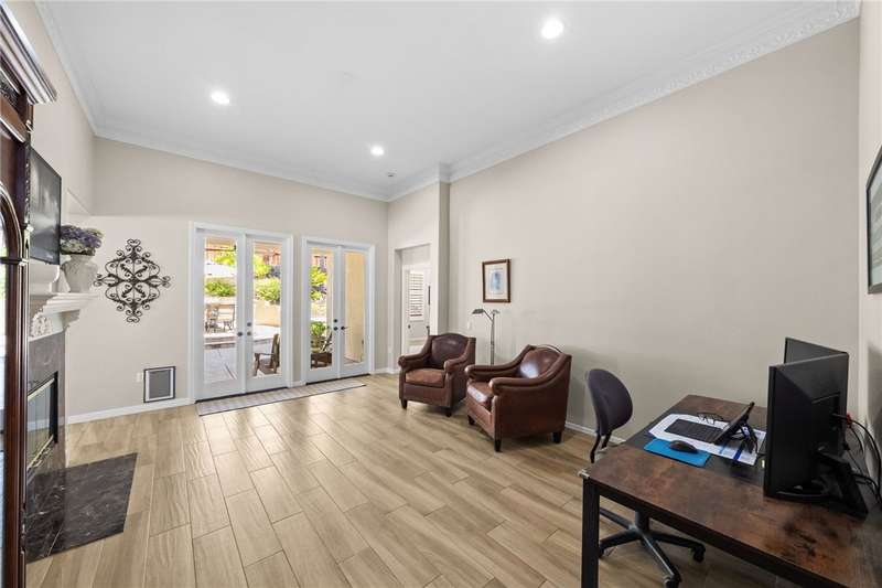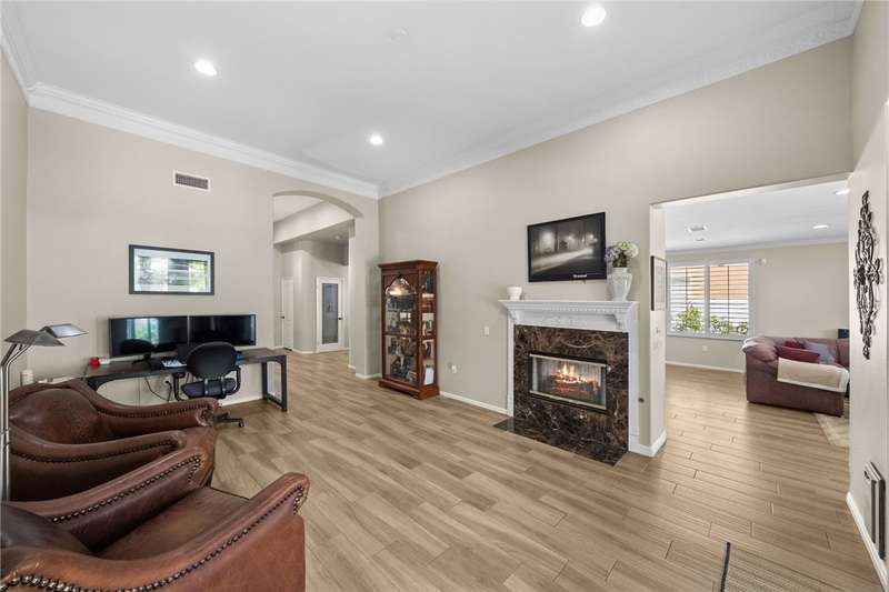 Welcome to Four Seasons, a premier 55+ resort-style community! This single-story home offers the community's largest floorplan with 2,773 sq. ft., 3 bedrooms, an office, and 3 full bathrooms. High ceilings and wood-looking tile flooring enhance the open, elegant layout. The chef's kitchen features granite counters, a large island with bar seating, stainless steel appliances including a Viking 6-burner cooktop, wall oven, convection oven/microwave, warming drawer, dishwasher, and a butler's pantry with wine refrigerator. A separate formal dining room connects seamlessly to the butler's pantry and kitchen. The kitchen also opens to the spacious family room with French doors to the backyard. The see-through fireplace warms both the family room and the living room, creating cozy yet stylish living spaces. Step outside to a large private backyard with fruit trees, a covered patio with ceiling fan, and plenty of space for entertaining or relaxing. Living in Four Seasons means resort-style amenities just steps from your door--recreation center, pool, spa, putting green, fitness center, pickleball and tennis courts, walking paths, BBQ area, plus a full calendar of social events and clubs. This home blends luxury, comfort, and community living at its finest!